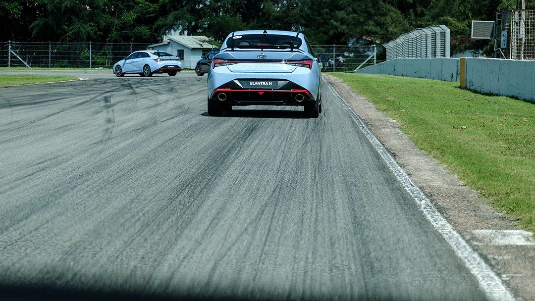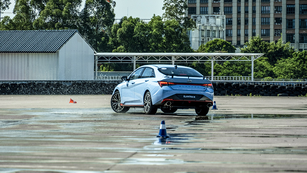 我们也进行了麋鹿测试、急弯转向等体验,车身侧倾在合理、能接受的范围,比起一般家用车强上不止一个维度,车身反应迅速,并且转向手感相对精准,不能说是快刀切豆腐,但也是算是指哪打哪了,并且也别以为性能车都应该是两厢,这现代Elantra N虽说是三厢车,但整体操控时尾部其实存在感并不高,车头过了也就过了,可以让你忽略尾部的存在,也不会出现某些大动力三厢车那种车尾甩出的情况,另外此次也没有基本没有感受到推头。