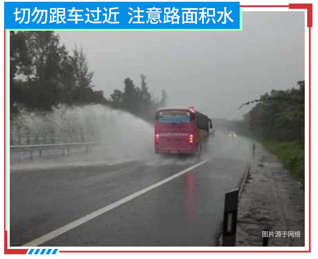 不管是在市区道路还是高速道路中,在雨天行驶都要加大跟车距离,注意不要跟大车过近,一方面是会阻挡视线,另一方面则是大车能够通过的积水路段,小车不一定能过,而且在行进过程中大车飞溅的水花更容易阻挡实现造成危险。