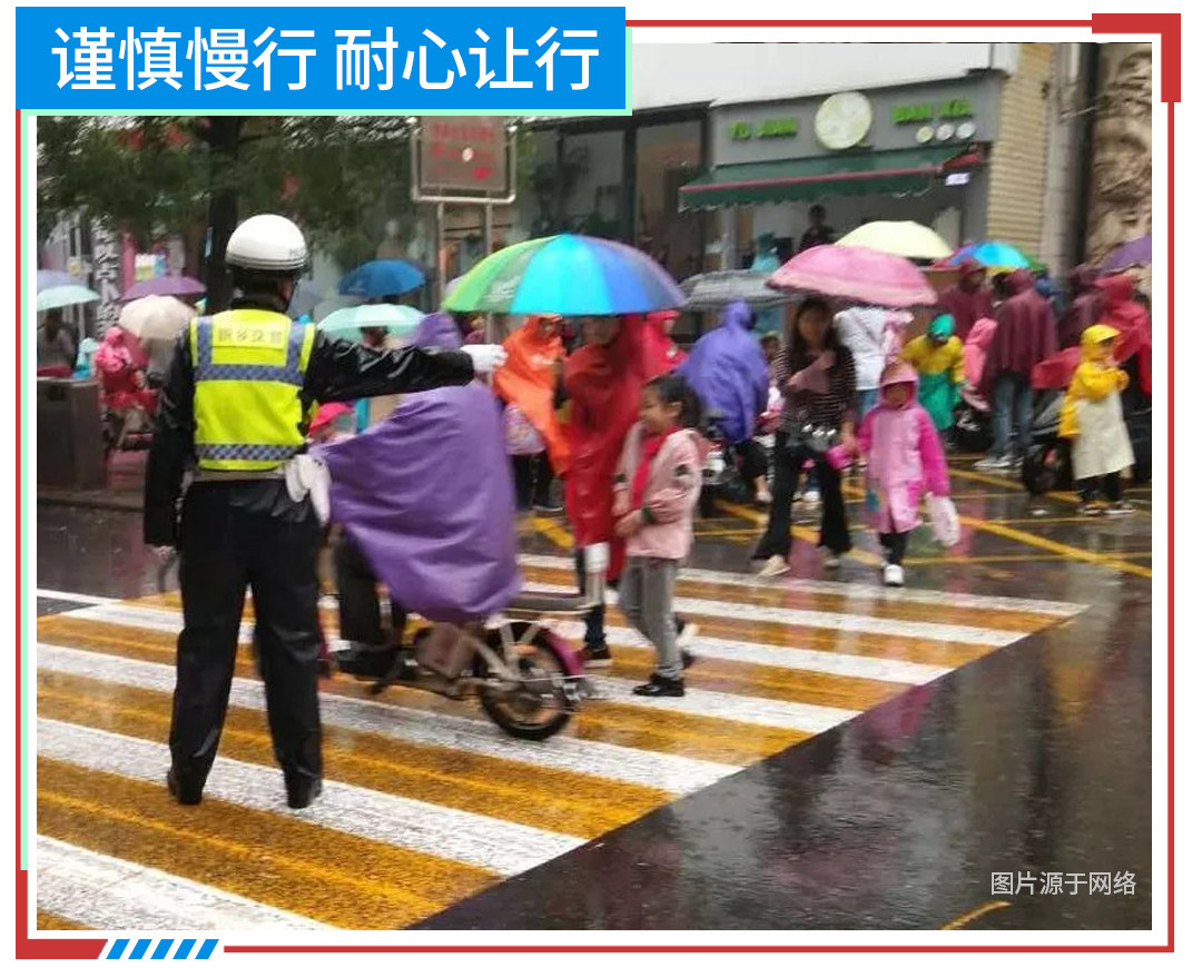 不仅如此,在下雨天气,行人、非机动车由于撑伞和穿戴雨衣的情况下,他们的视觉、听觉、反应等方面会受到较大影响和限制,相比以往更赶时间,面对穿梭的车辆容易慌张和滑到。所以驾驶员面对这一情况,保持低速行驶的同时还需提高注意力,耐心避让,提高出行安全。