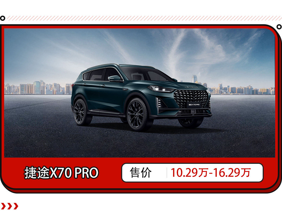 7月29日,捷途X70 PRO正式上市,新车涵盖了5座/7座两种座椅规格,1.5T+6DCT、1.6T+6MT、1.6T+7DCT、2.0T+7DCT四种动力组合共17款车型,售价区间为10.29万-16.29万元。