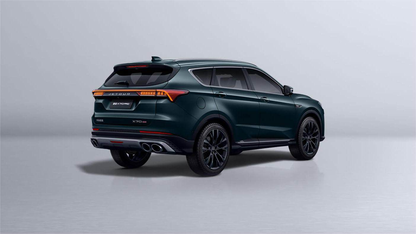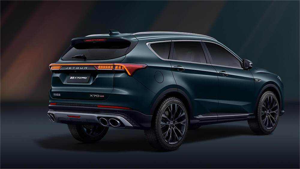 车尾部分,捷途X70 PRO的造型设计依然是偏向于硬朗稳重。新车车尾采用了修长的贯穿式尾灯,并且后保险杠下方全系标配了双边共四出排气布局,进一步提升了整车的运动氛围。