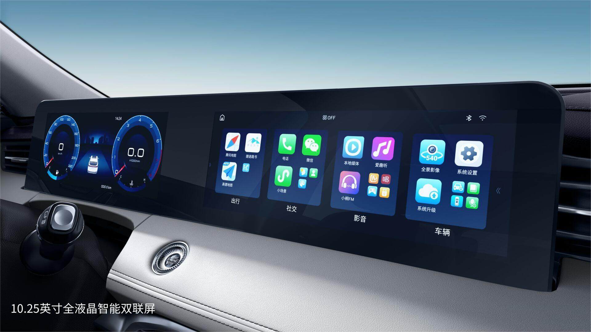 智能化方面,捷途X70 PRO所搭载的10.25英寸双联屏匹配了华为HiCar,并且自带腾讯生态应用,支持双音区语音识别、手机APP远程控制等功能。另外,新车还配备了360°全景影像+180°透明底盘和L2.5级自动辅助驾驶,覆盖了用户全场景的智能化需求。