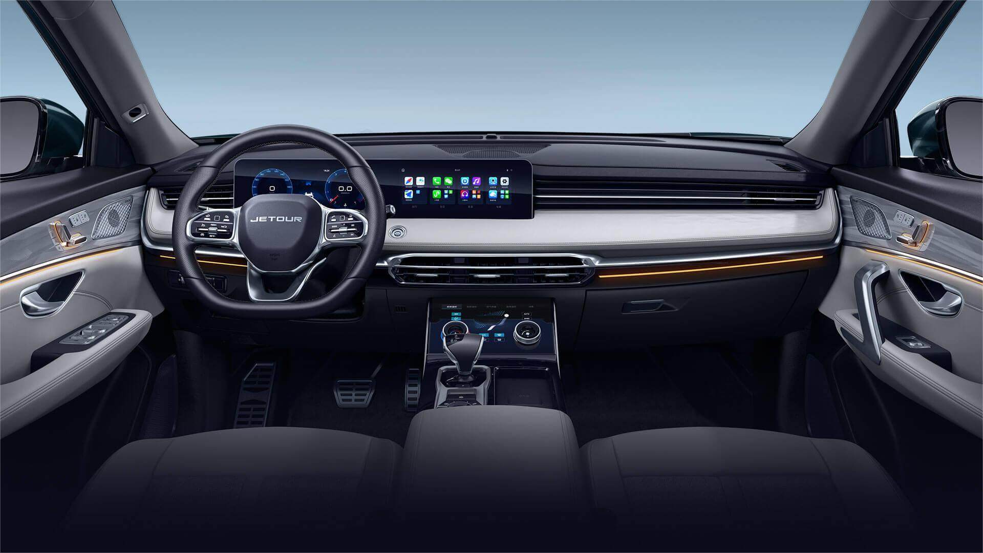 车内部分,捷途X70 PRO中控台上时下流行的双联屏设计,与双联屏齐平的贯穿式空调出风口以及空调触控面板则延续了捷途X70的设计风格。二者的外观设计虽然风格迥异,但中控台设计倒是一脉相承。