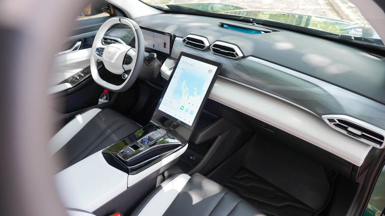 进入内饰,最惹人注目的还是皓瀚·马赫电混DH-i运动而科技的造型,虽然全液晶仪表搭配纵向布局的大尺寸中控屏让其显得简单,但其两侧与上方配备具有棱角的空调出风口不难让人联想到一台超跑的设计,所以内饰同样战斗性十足。