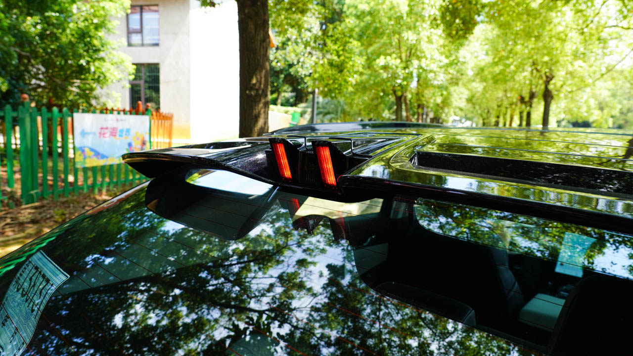 来到尾部,新车造型虽然比前脸较为简洁,但这简洁并不代表造型简约,因为新车不仅在尾窗上方加入了类似战机上的分离式机翼,下方还配备贯穿式尾灯组以及带后扩散器的双边共四出排气,战斗感十足,只不过这个四出排气是个装饰。