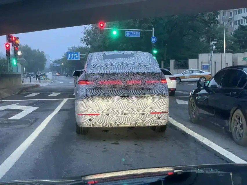 而更具特色的则是小鹏X9的车屁股,从D柱位置向下倾斜延申的线条加上同样倾斜的后挡风玻璃,并且其车尾位置疑似还配备了大尺寸扰流板。这也使其拥有不同于其他方正平直MPV车型的观感,小鹏X9可以说是业界首创的“轿跑MPV”车型。