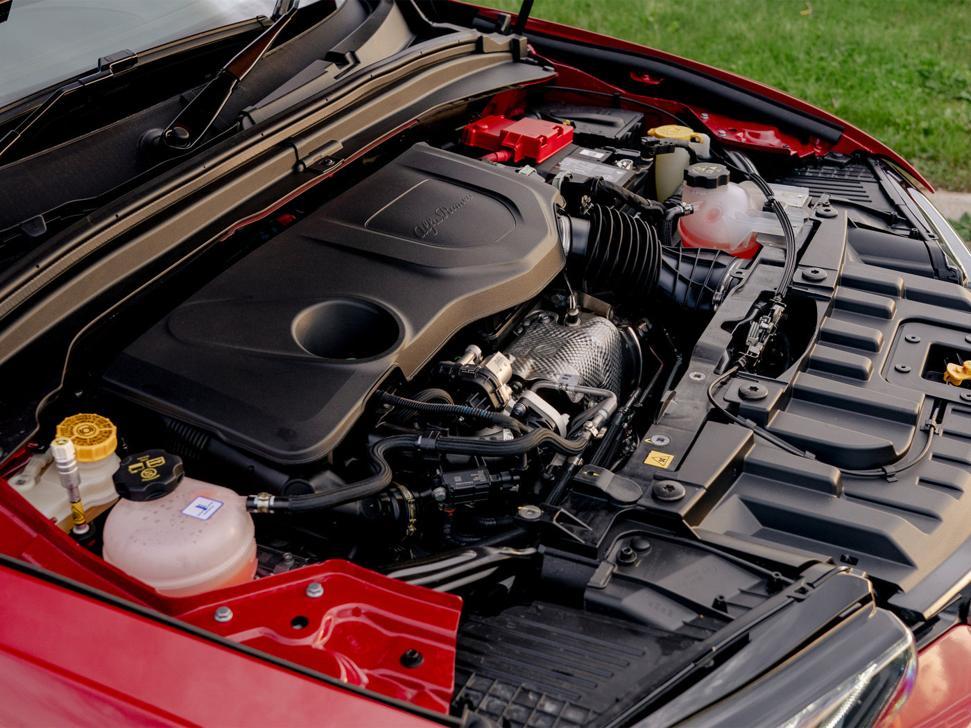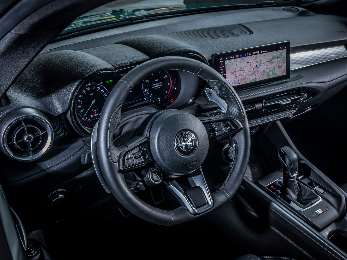 内饰方面,在这辆Tonale上面能依旧感受到那股传统的意大利跑车氛围感。内饰大量使用了翻毛皮,方向盘也有碳纤材质包裹,豪华感与运动感都完美兼顾了。12.3英寸的全液晶仪表盘沿用了阿尔法罗密经典的“航海望远镜”设计。10.25英寸的中控屏支持Apple Carplay和Android Auto,能够显示各种小组件以及阿尔法自家的服务。整个中控区域以实体按键为主,确保了驾驶过程中的操作准确性。值得一提的是,该车还配备了14个扬声器的哈曼卡顿音响,除了能享受极致操控的同时也能感受到高品质的音乐体验。