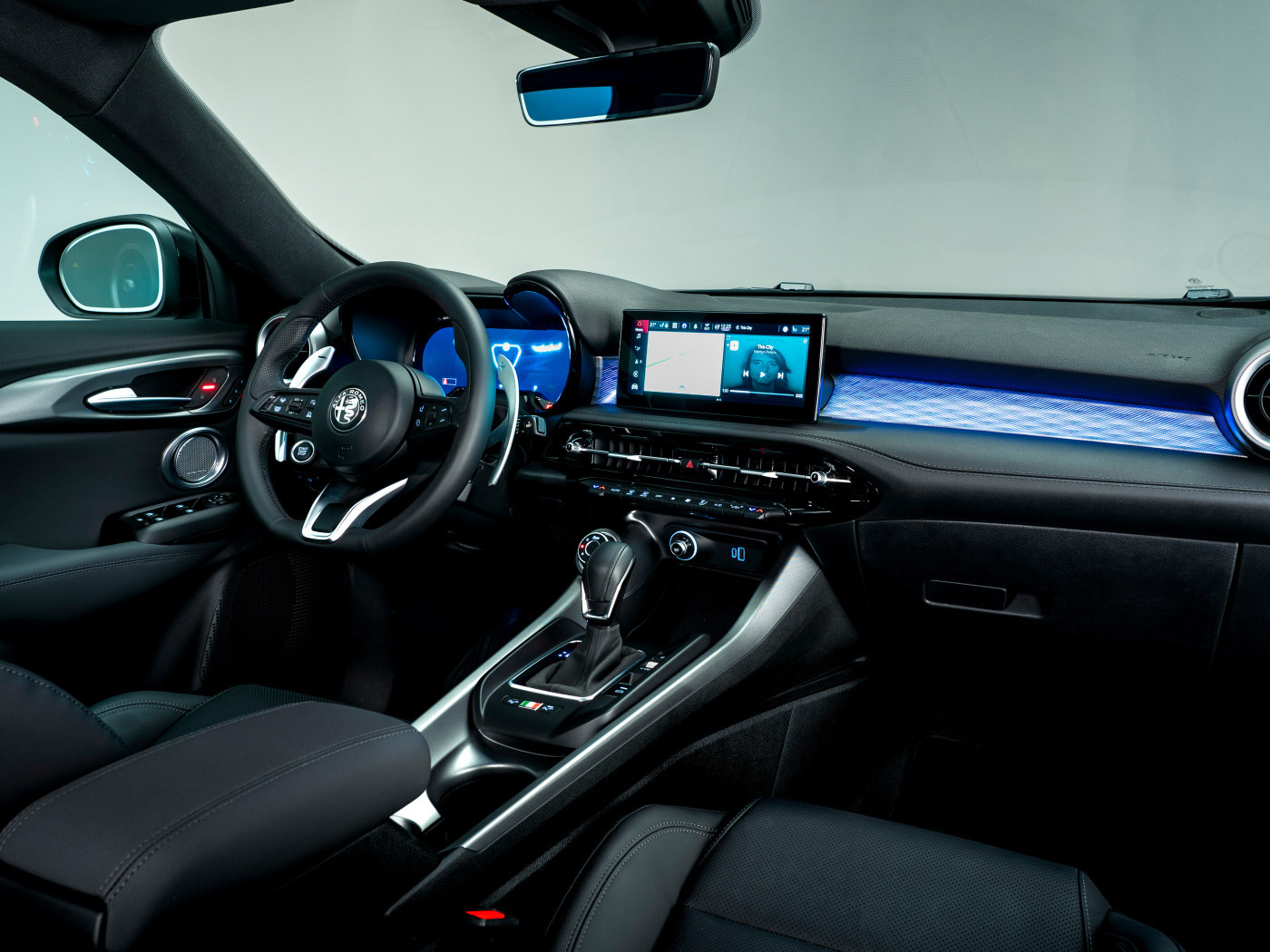 Engine star旋钮以及位于挡把下方的绿白红三色旗都是意大利车标志性的设计。据悉新车还将配备L2级别的辅助驾驶,能够实现智能自适应巡航控制、车道居中以及交通拥堵辅助。此外,车辆还配备了四个高清的摄像头以提供盲区监测以及360全景影像等影像辅助。