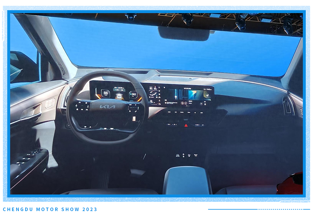 所以内饰设计当前只能参考官方发布的效果图,新车将采用悬浮式的双12.3英寸的联屏造型搭配5英寸的独立空调屏,造型与起亚EV9风格基本一致,两者只是在一些细节上有所差异。