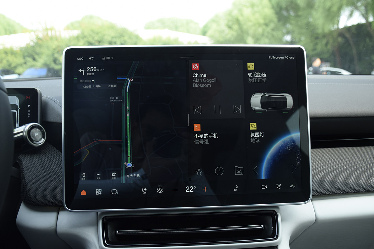 其实极星 4的智能车载系统也是主要亮点,不过这次展车还是试装状态,车机系统暂时无法获得完全体验,所以不分享太多具体感受了。首先是芯片,采用了当下很主流的高通骁龙8155,然后车机系统是Flyme Auto,拥有Flyme Link超级桌面,除此之外还有丰富的本地应用,例如QQ音乐、高德地图、爱奇艺等等。