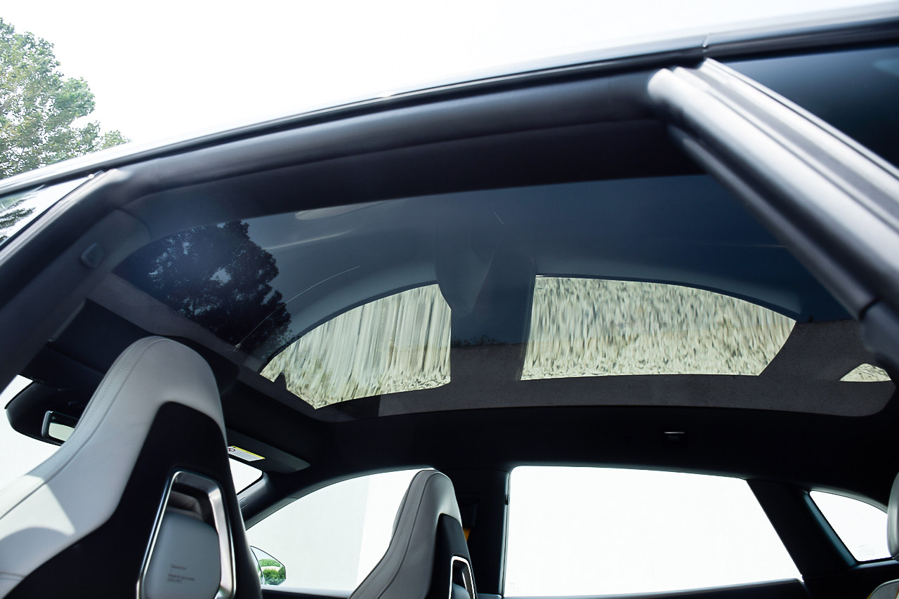 即便如此依旧会有用户希望车内可以更暗一些,为此极星 4配备了PDLC可调光天幕,不依靠遮阳帘,也可以在毫秒内切换到无透光模式。