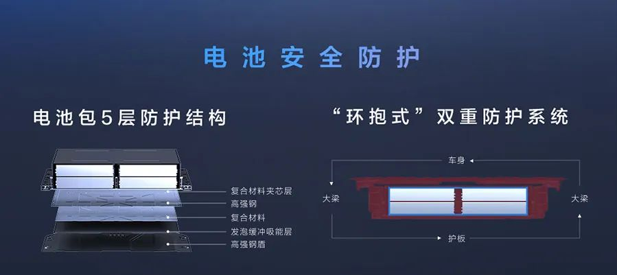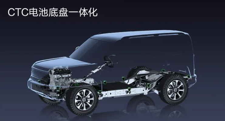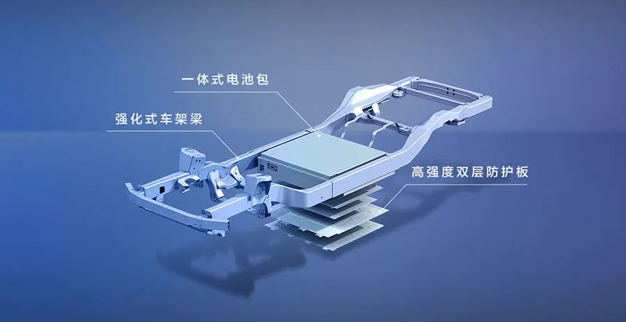而DM-o的CTC电池底盘一体化技术则很好的解决这个问题,将电池与高强度钢车架集成为一体,电池即是能量体也是结构件,不仅能够减少电池的零部件数量,带来轻量化提升和空间利用率,最主要的是提升了车身的扭转刚性,还能依托强度更高的车架以及多层防护结构保护电池安全,可谓一举多得。