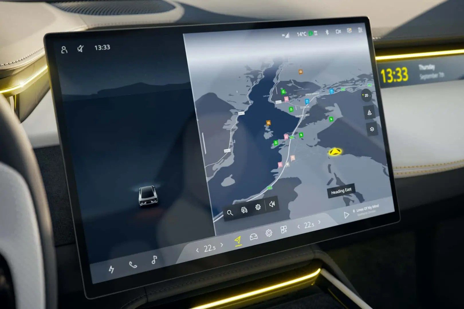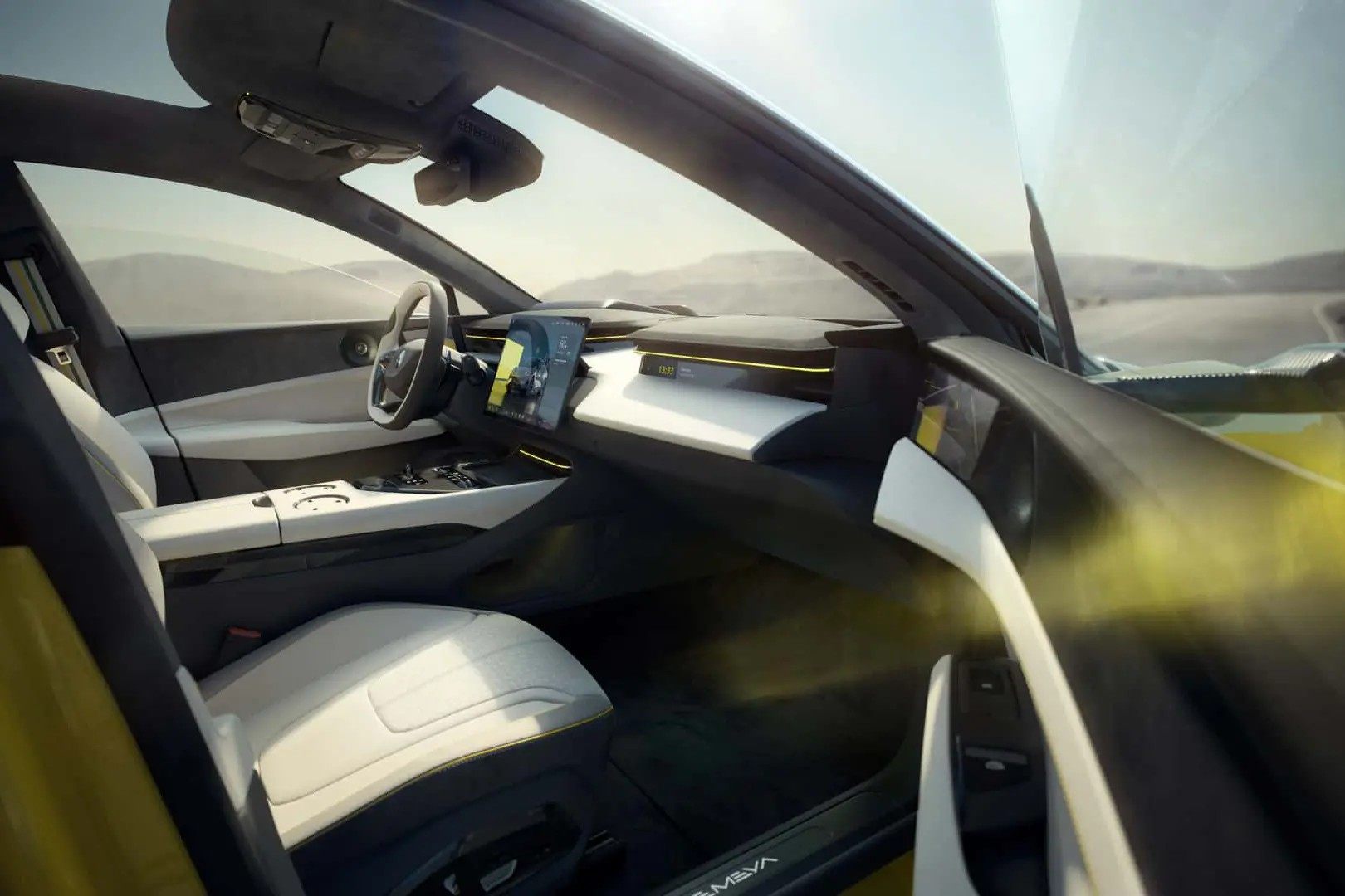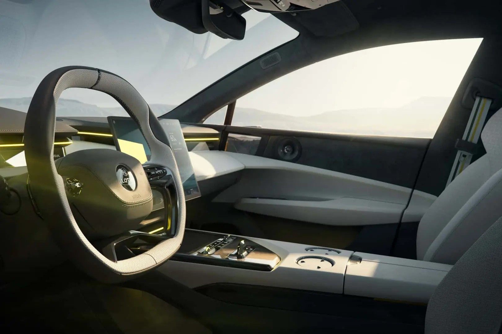 内饰方面,和目前流行的新能源轿跑车型一样,路特斯Emeya的整体设计布局也将会十分简洁,其将会配备上十分细长的内嵌式液晶仪表、大尺寸的副驾显示屏、悬浮样式的液晶中控屏幕,配以造型运动的三幅式方向盘以及规整的中央扶手,整体的对称式布局十分新颖潮流。