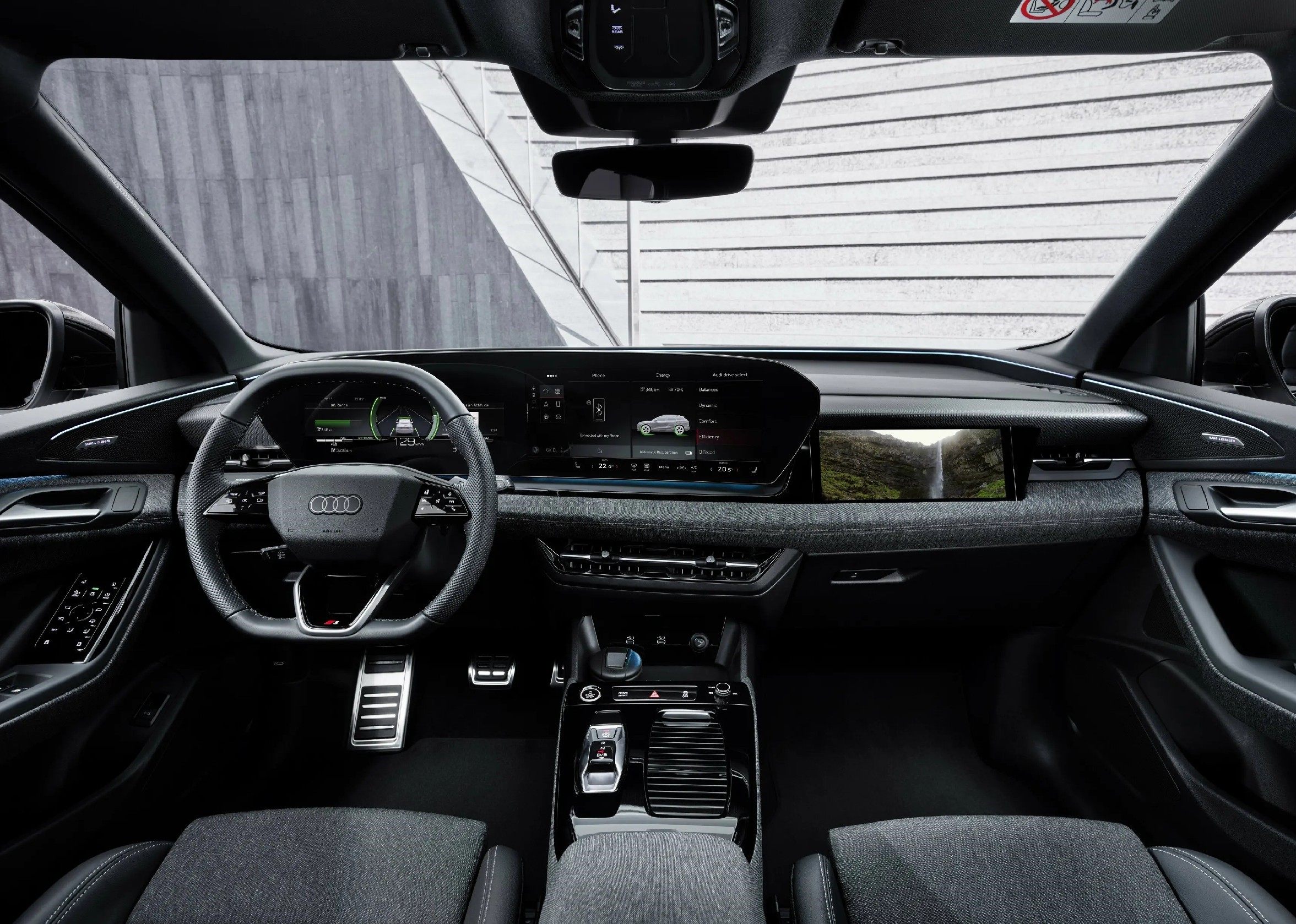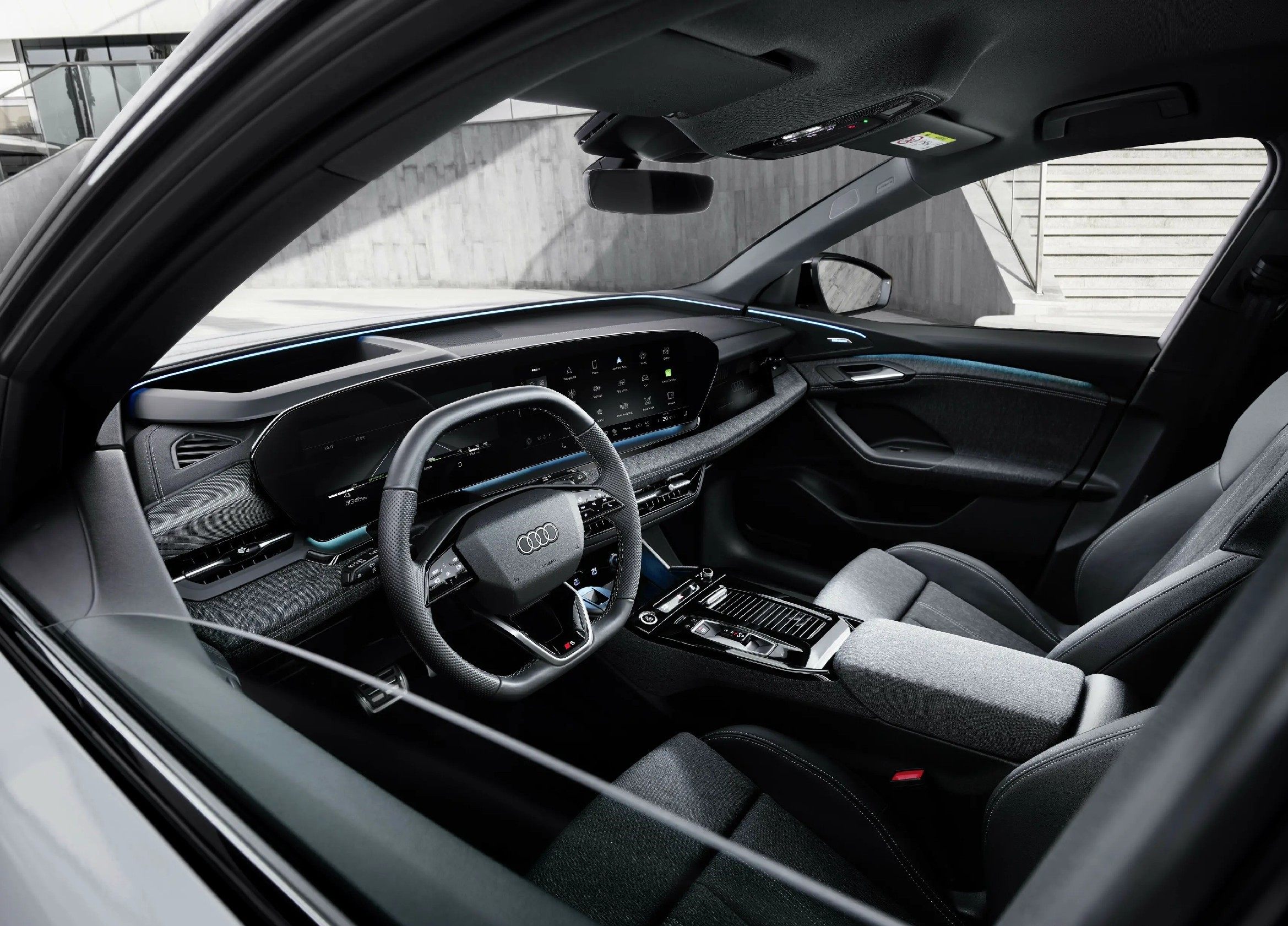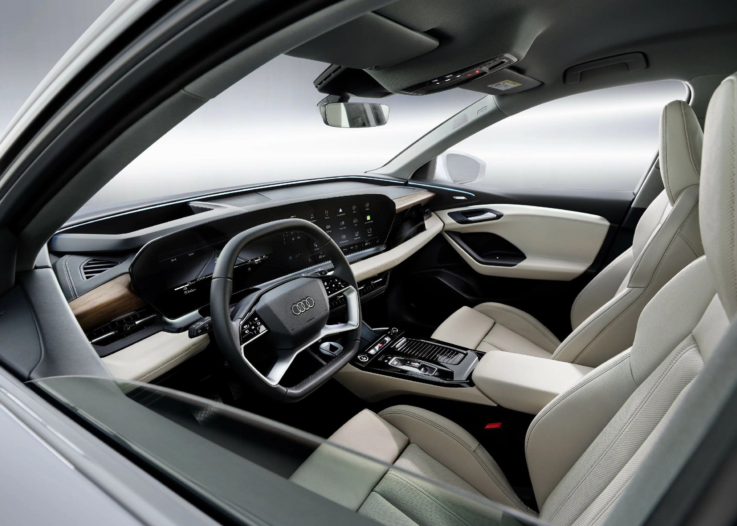 该车型将会搭配有全新的奥迪虚拟座舱和14.5英寸MMI触摸中控显示屏组成的大尺寸曲面双联屏,副驾屏幕也搭载了嵌入式的10.9英寸的娱乐显示屏,但将不会和双联屏衔接,意在区分开使用用途和方向。