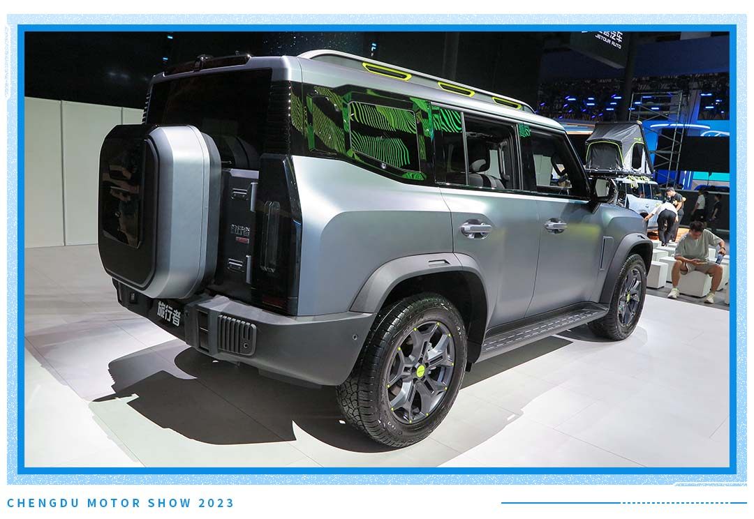 旅行者的尾部设计同样非常复杂,但同样也相当硬朗,能够给人一种过目不忘的感觉。新车车尾背着一个在硬派越野车上非常常见的“小书包”,配合着两侧直瀑式尾灯,整体尾部造型非常惹眼,有着极高的辨识度。