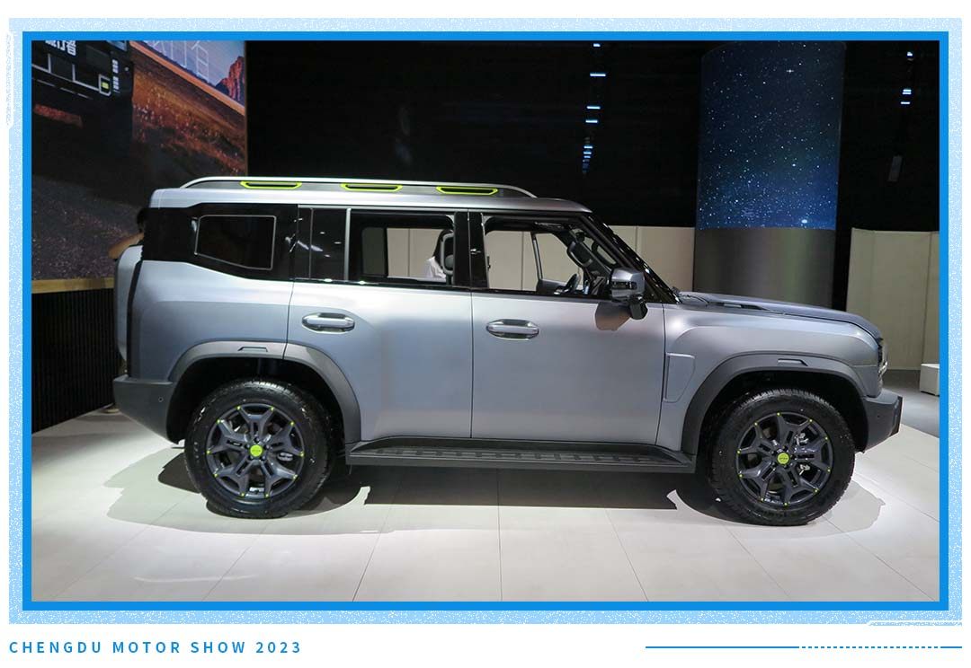 相比起车头,旅行者的侧面设计倒是简洁了不少,但造型同样非常硬朗。新车车顶行李架采用了三处打孔设计,不仅造型硬朗,同时也有着不错的实用性;两侧前翼子板以及后座车门、后翼子板横平竖直的轮拱设计极具硬汉气息。