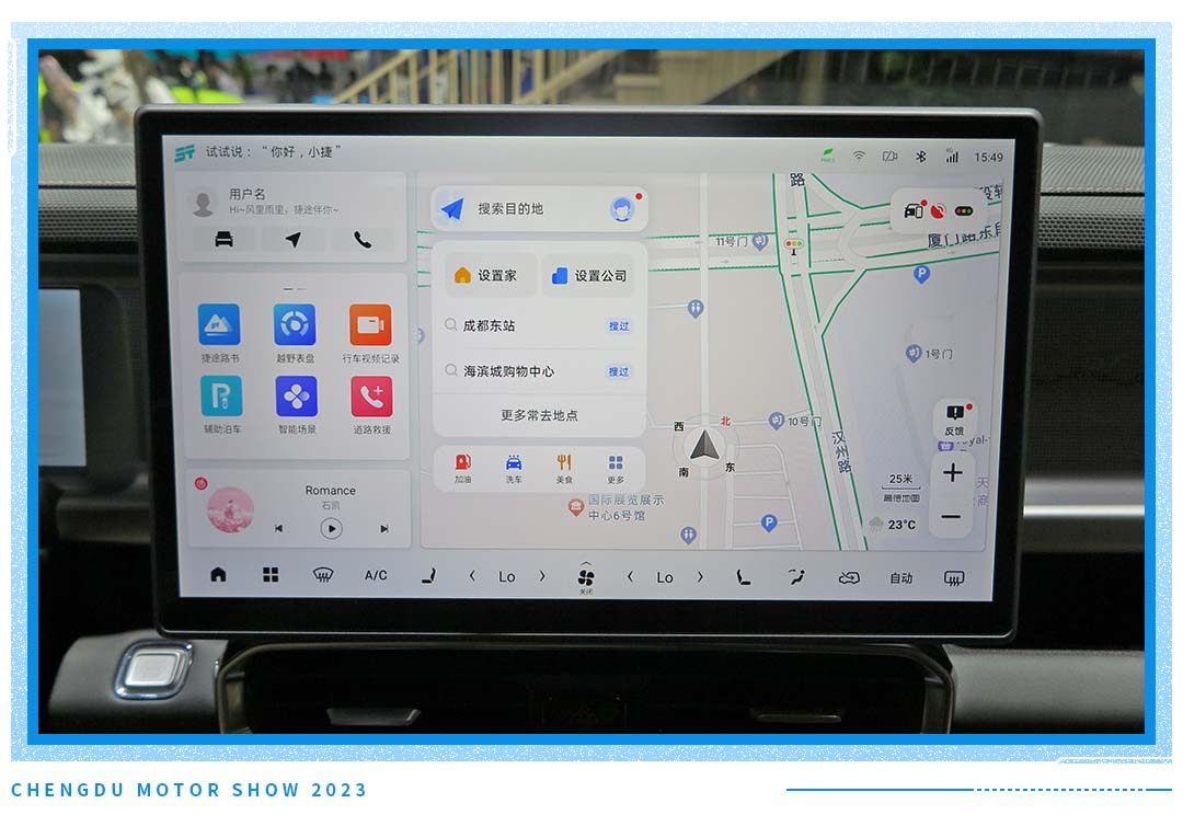 智能化硬件方面,旅行者的中控台并没有采用俗套的双联屏设计,它的全液晶仪表盘采用了内嵌式处理,外廓部分能够为屏幕起到一定的遮光效果。说实话,相比起简单粗暴的双联屏,旅行者内嵌式的仪表盘设计确实更加人性化,也更有设计感和高级感。
