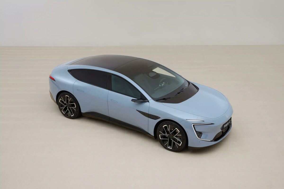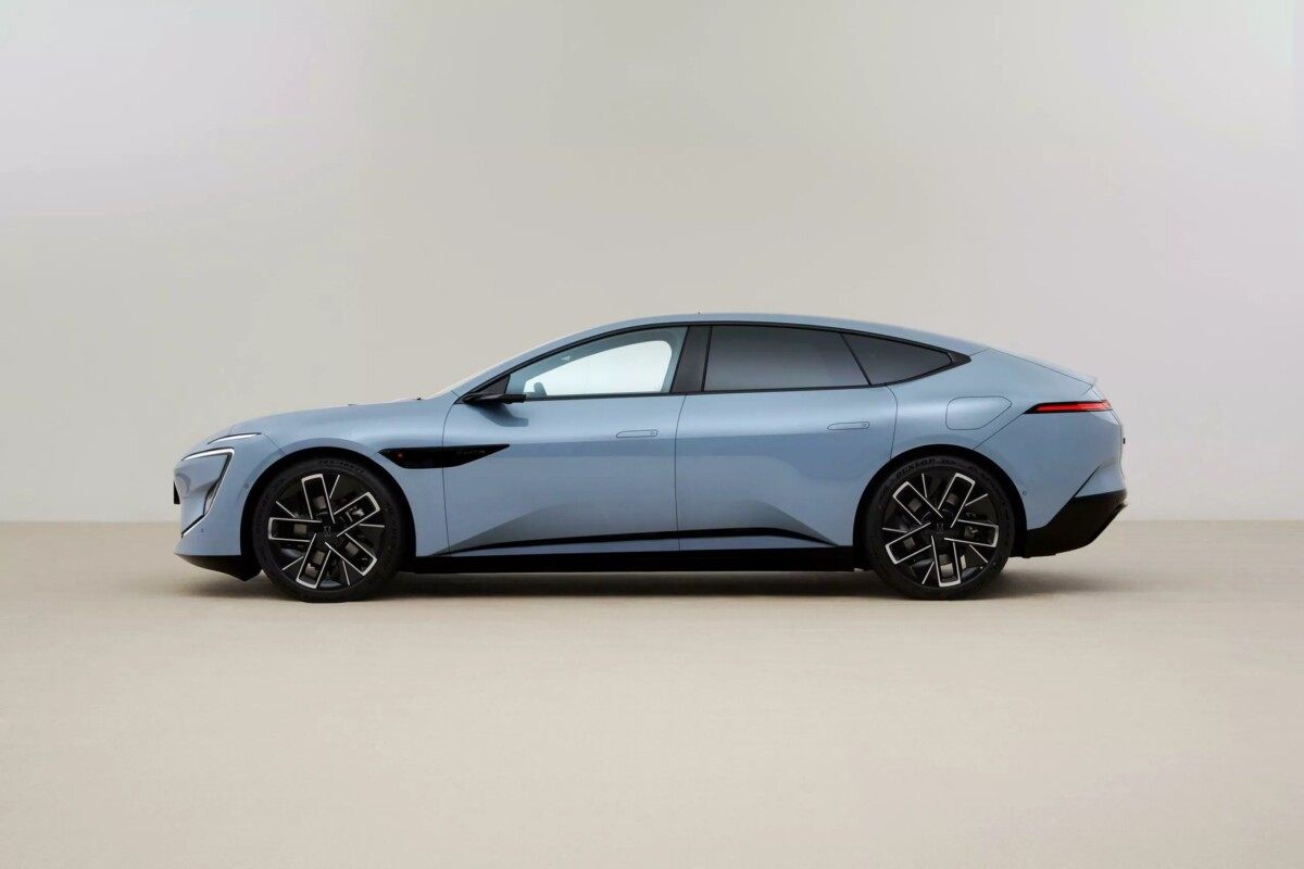 侧面采用了溜背轿跑式的造型,采用大曲率线条,整体线条非常优雅。整个车顶从A柱就开始下滑直到下落到车尾,看起来非常舒适,就好像概念车完完整整的出现在面前一般。而在两侧翼子板各设计了一个激光雷达,加上前脸车牌下的激光雷达共三颗,配合华为MDC810计算单元,算力达到了400+Tops。