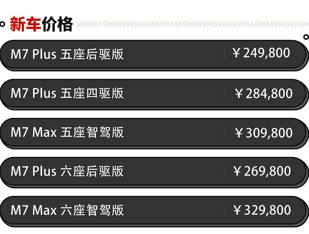 9月12日,AITO问界新M7系列正式上市。新车共推出了5款车型,在座椅布局方面提供了5座和6座版本可选,并且提供了单电机后驱和双电机四驱两种不同的驱动形式,售价区间为24.98万-32.98万元。