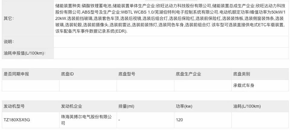动力方面,不同于现款车型,新款东风风行雷霆将会搭载一台最大输出功率120千瓦的驱动电机,并匹配磷酸铁锂电池组,最高车速为160公里/小时,其余加速以及续航能力目前尚未公布。