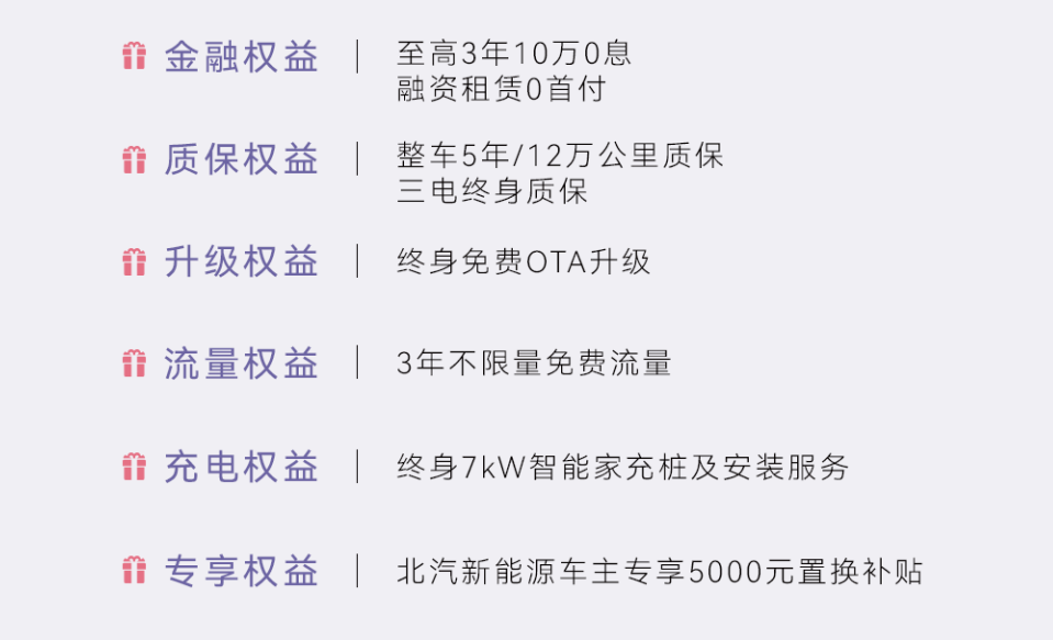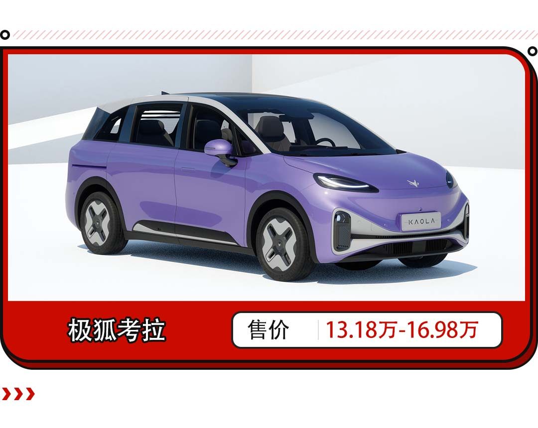极狐考拉目前共推出了4款售价区间为13.18万-16.98万元的4座版车型,预计将在明年第三季度推出5座版车型。另外,在2023年12月31日前购买极狐考拉并完成开票的用户还可以享受金融、质保、升级、流量、充电、置换等权益。