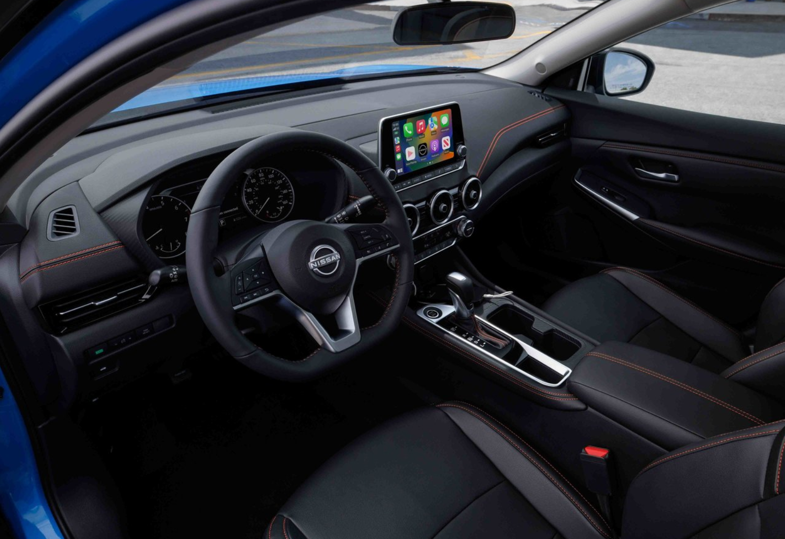 内饰方面,2024款日产Sentra同样是延续旧款的悬浮式中控屏搭配传统的主驾仪表,空调出风口采用的是圆形造型,配备的是传统电子换挡机构。