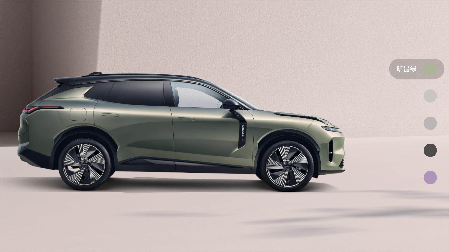 领克08最显而易见的变化就是颜值上的焕新,因为它是首款采用了全新“都市对立美学”设计语言的车型。另外,新车一共提供了旷晶绿、曜日银、灰、黑以及暮光紫五种外观配色,其中暮光紫为时间限量版车型专属配色。