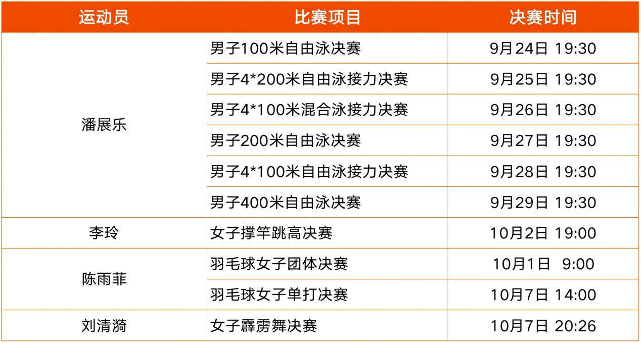 曾在东京奥运会荣膺羽毛球女单冠军的杭州藉运动员陈雨菲,也是亚运火炬传递收官站的“001号”火炬手,她将从9月28日-10月7日征战羽毛球女子团体和羽毛球女子单打比赛。
