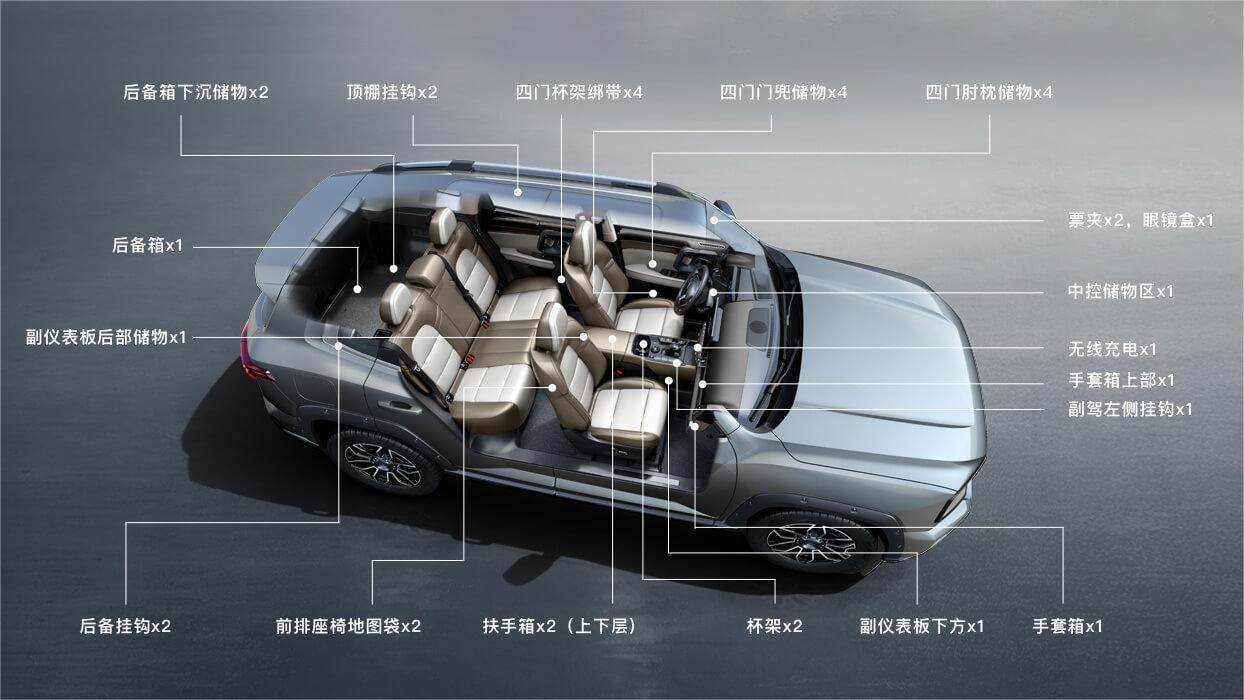值得一提的是,哈弗二代大狗PHEV 105km潮电版虽然造型狂野,但却并不粗糙。它的车内有着多达35处储物空间,并且储物空间的细节处理和非常到位。例如,为了应对越野路况,它在车门杯架上设计了用于固定水杯的绑带。