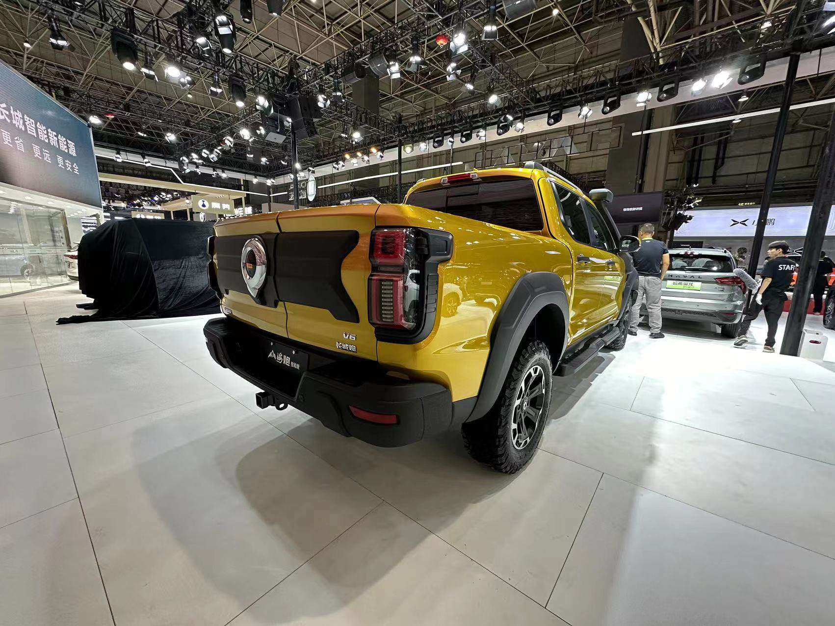 尺寸方面,山海炮性能版长宽高分别为5493/1992/1960mm,从数据层面上来看,已经是接近全尺寸皮卡的体型了。金色与黑色的车身颜色搭配,以及更硬派野性的套件样式,营造出“金甲”战袍的视觉效果,战斗感十足,给人以更具冲击力的视觉感官。此外,通过短后悬、长轴距、宽轮距及优化避震布置等设计,让山海炮性能版拥有更和谐的车身结构比例,看起来既舒展又霸气,让皮卡也能拥有比例协调的高颜值身材。