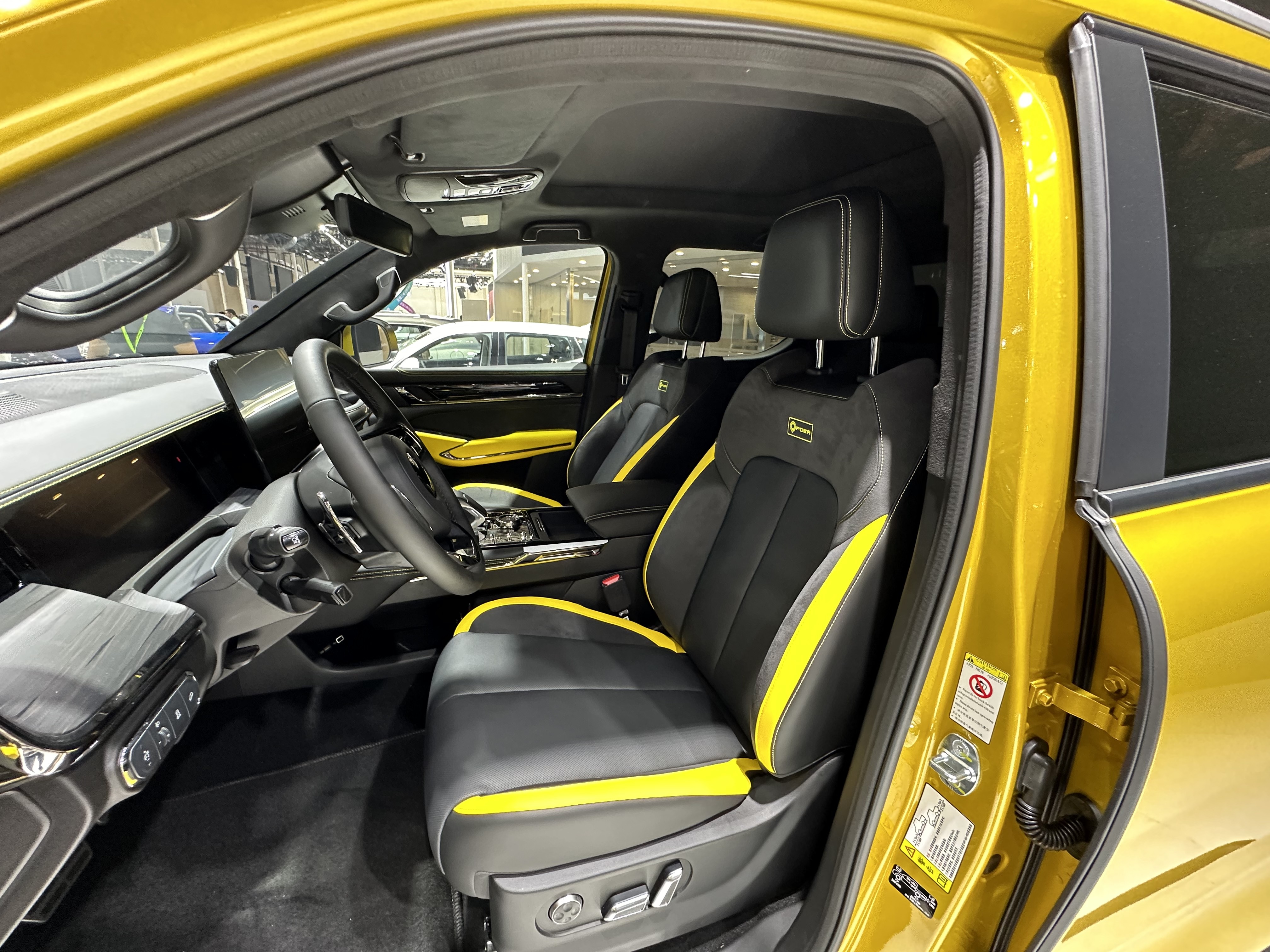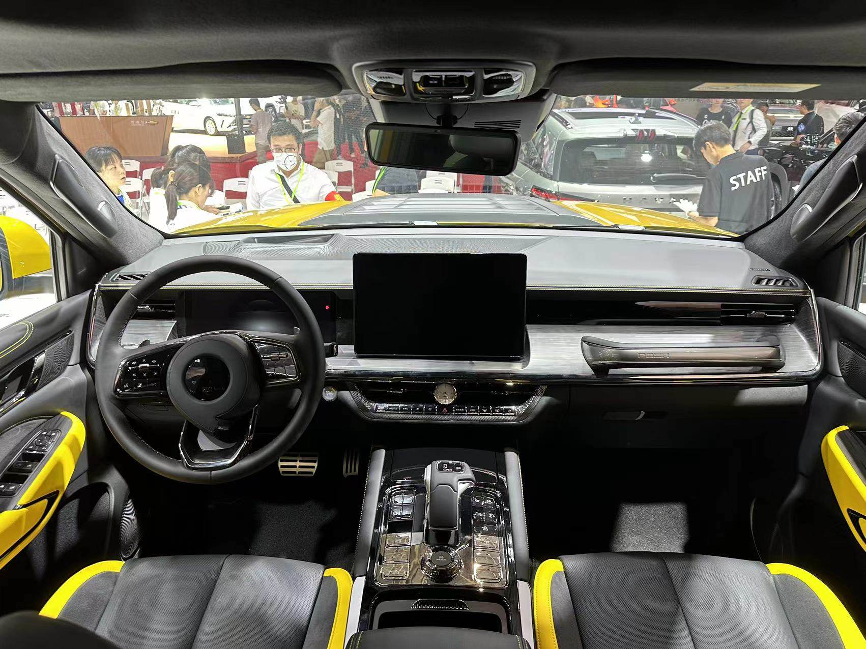 座舱内饰部分,山海炮性能版采用了现代化的乘用车设计风格,大面积的软质材料、木纹饰板以及电镀装饰的运用,彰显了座舱的品质感。此外,12.3英寸液晶屏+14.6英寸悬浮式中控屏的搭配,看起来科技氛围非常浓郁。