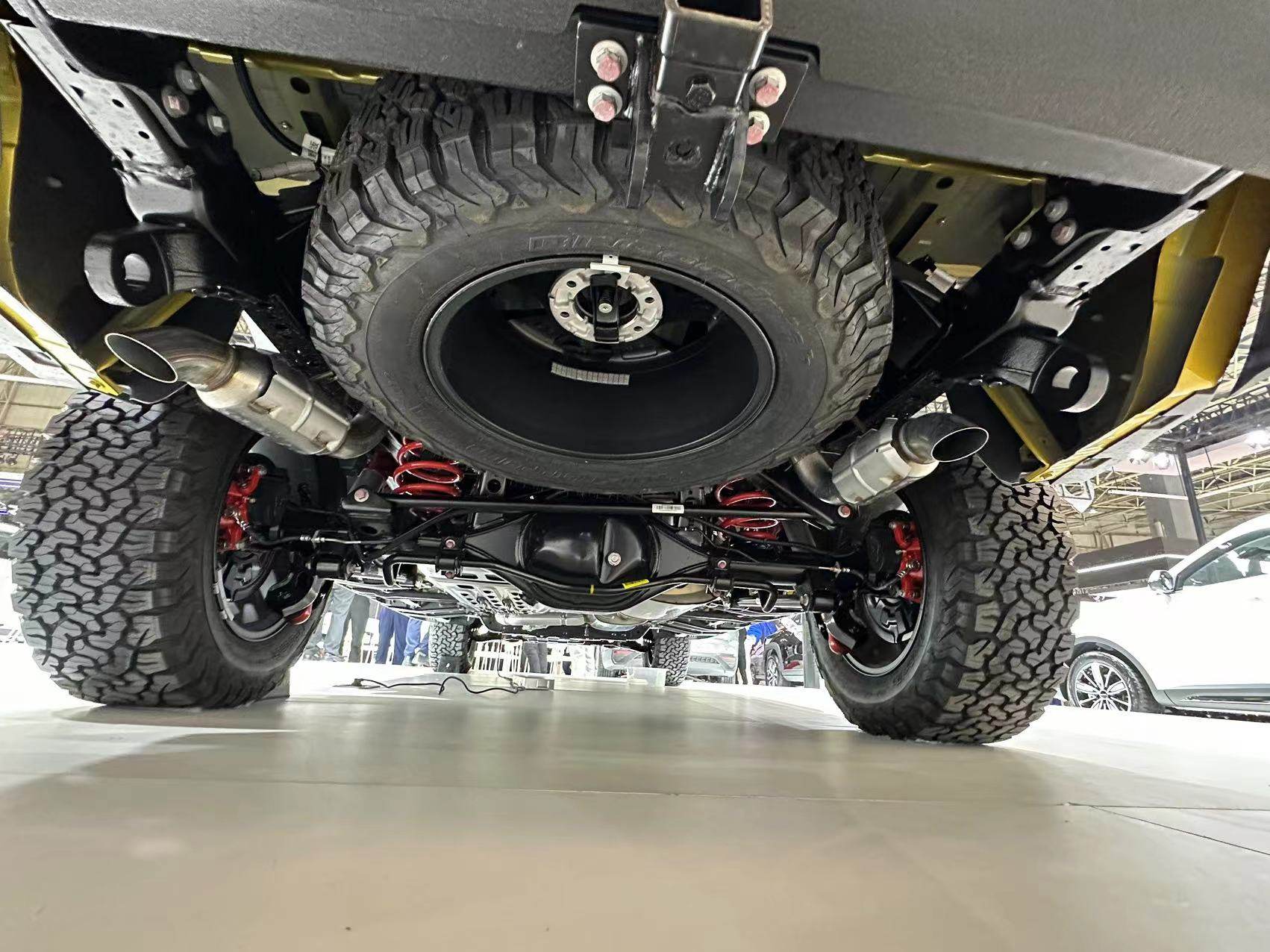 首先,山海炮性能版的车辆通过性表现出众,对大部分越野路况都能轻松应对。这得益于山海炮性能版在车身高度方面升高了1.5寸,最小离地间隙达到了239mm。同时,车辆增加了涉水喉,最大涉水深度高达900mm,让山海炮性能版拥有了“上山下海”的能力。