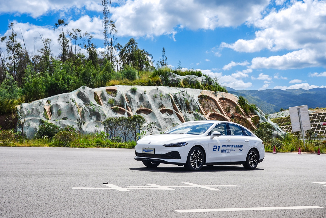 此次挑战赛的长距离测试,设置在地形变化相对复杂、海拔高度具有一定挑战的云贵高原,能够较为真实地模拟消费者的出行场景。得益于专用高效长续航电池的技术优势,荣威D7 DMH以142km的续航表现在纯电续航实测中拿下第一,显著优于同组参赛车型;而综合续航里程高达1400KM,也足以让用户出行无忧、跑得更远。