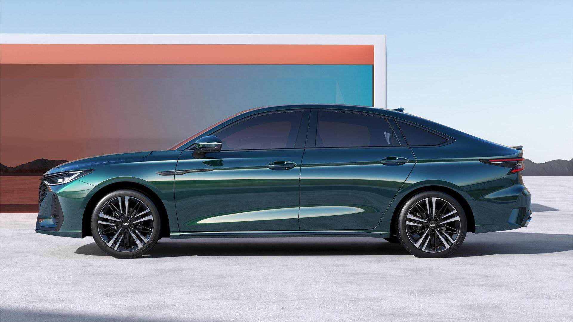 车身侧面,奇瑞艾瑞泽8插混版还是修长扁平的车身设计,车顶将提供黑化悬浮式车顶以及同色两种选择。尺寸方面,艾瑞泽8长宽高分别为4780/1843/1469毫米,轴距为2790毫米,定位紧凑型级别,但表现已达到A+级水平。