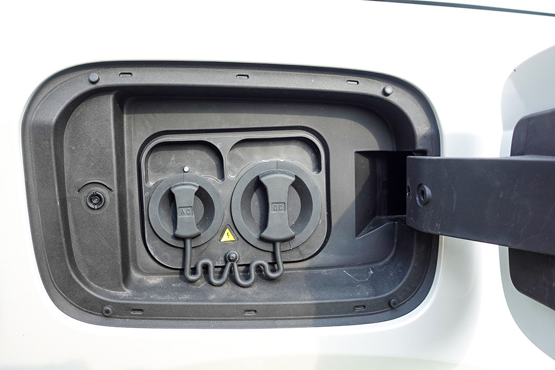 在车头左侧还带有充电插口,并且是快慢充相组合的,不用多开盖子,车身更为简洁,就是开启时缺乏阻尼,稍微影响了一点精致感,要是能改成电动开合就更好了。