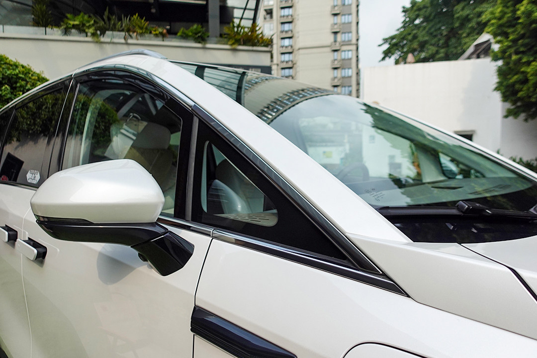 侧面是典型的MPV横平竖直造型,一切都是为了空间,它车身尺寸达到了4907x1885x1768mm,相当克制的尺寸但有着2975mm的轴距,这参数与丰田埃尔法相当,但视觉上又更为大气。