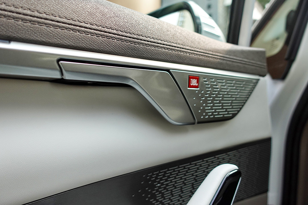 值得一提的是,它是同级唯一采用双隐藏式门把手设计的车型,更为简约,并且可以看到它搭载的是JBL音响系统,该品牌也是不少影院的音响供应商。