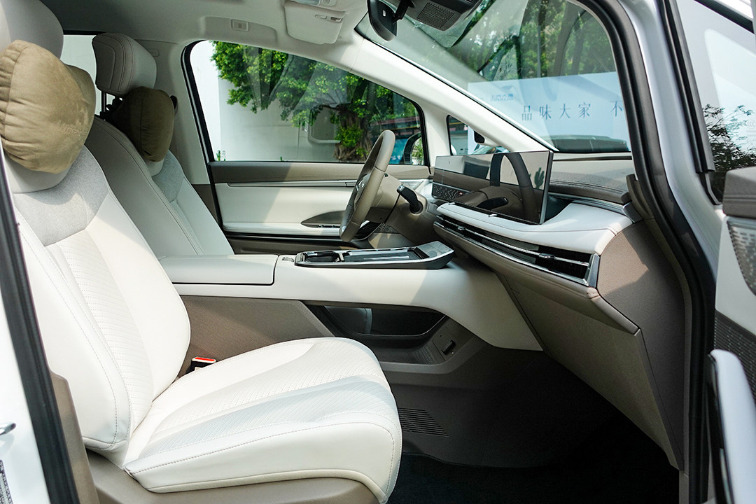 动力方面,大家7采用了前置单电机布局,也就是前轮启动,电机最大功率180千瓦,峰值扭矩350牛·米,相当于一般高功率2.0T动力水平,相信推动这中大型MPV并不费劲。电池部分则是时代上汽(宁德时代-上汽合资企业)提供的三元锂电池,容量有77千瓦时以及90千瓦时可选,分别能达到527公里以及605公里的CLTC续航,从MPV的使用特性来说,教授更推荐605公里版本,或者等待接下来会推出的换电版本。