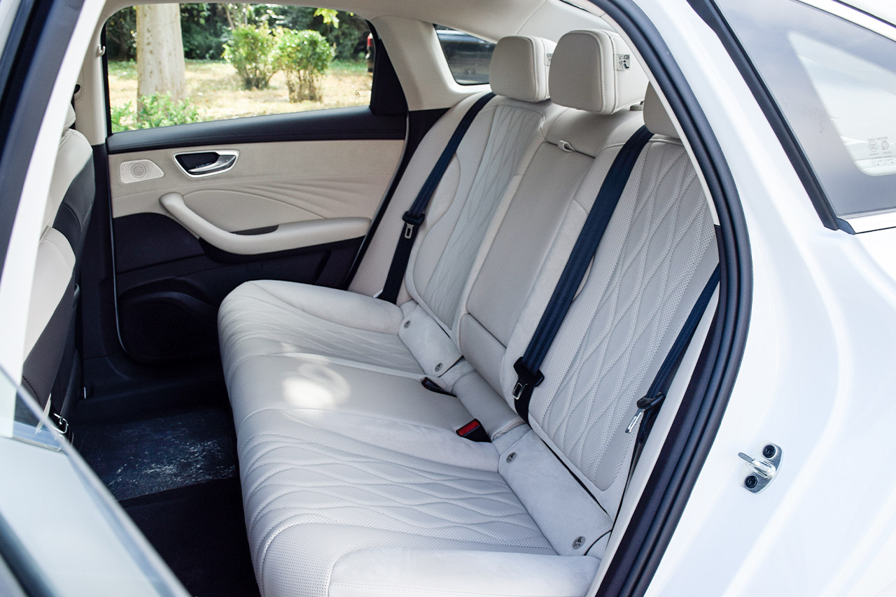 第二排要说绝对空间看起来不算大,但是它第二排坐垫长度足够,臀点很低,坐下去有一定嵌入感,而且靠背角度比较优秀,座椅材质附着力也很好,所以用户在第二排是有一点微微躺下的感觉的,整体舒适感是让人印象深刻的。