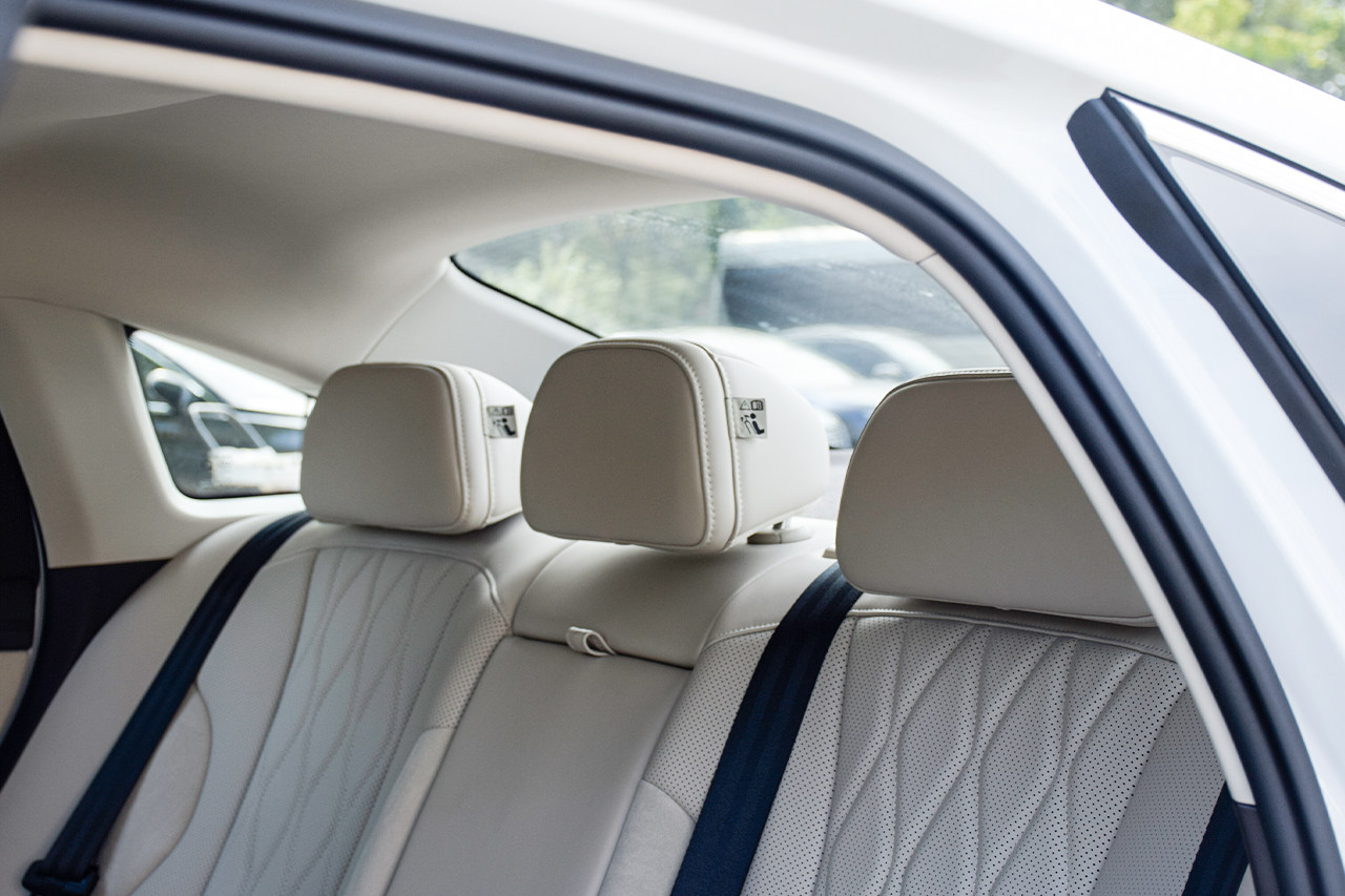 另外一些细节方面,第二排配备了中间头枕,并且三个都很宽大,有中央扶手、第二排空调出风口和USB电源,基本符合预期。