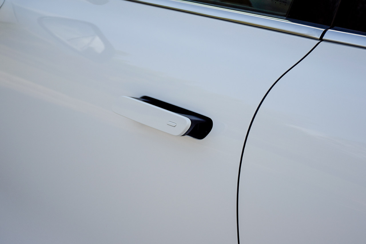 除此之外,荣威D7 EV外部还有个细节点,就是它采用了隐藏式门把手设计,当时成都车展上展出的DMH车型则采用了传统式门把手,这算是两台车侧面的一大区别点。