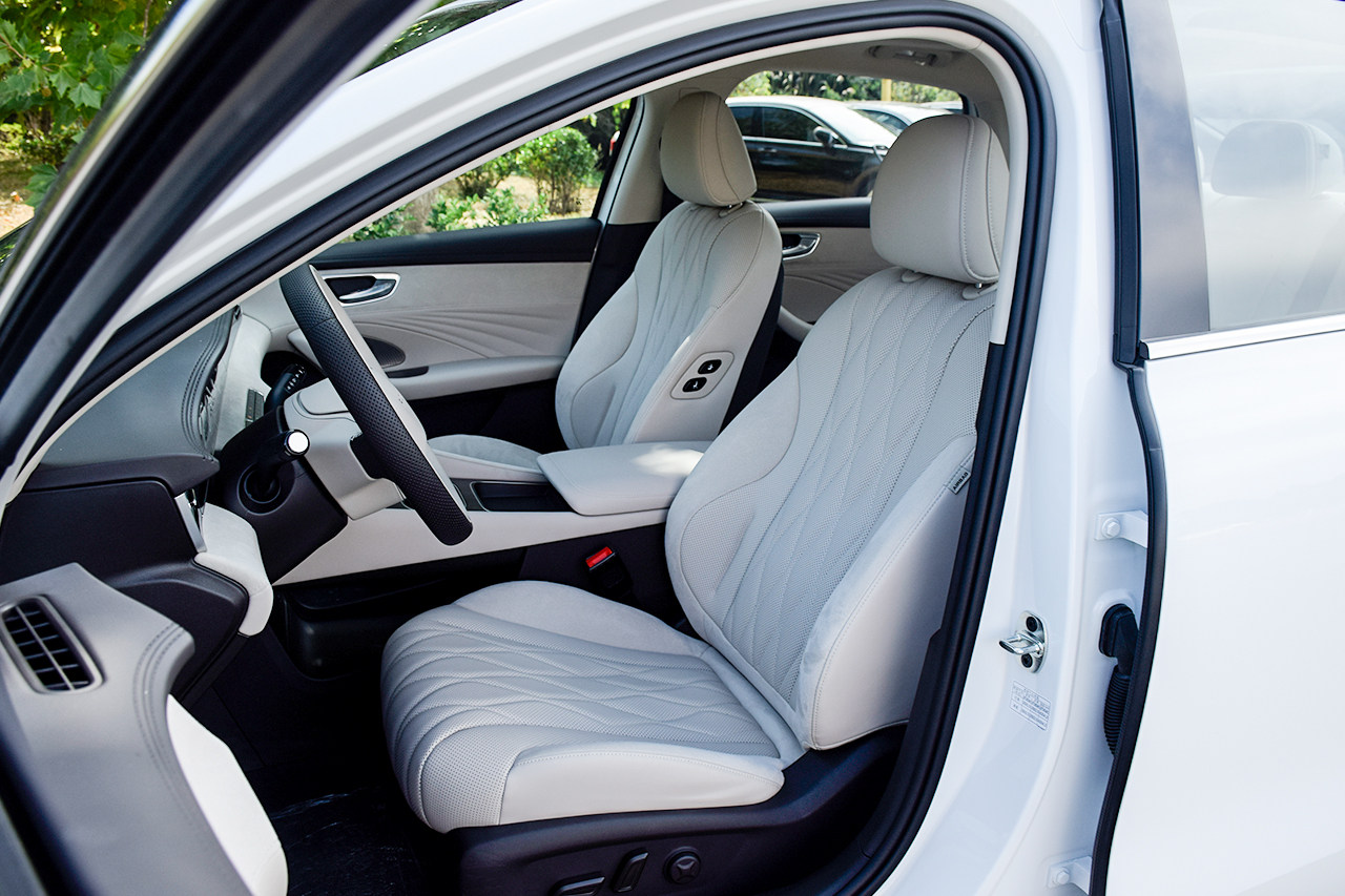 车内重点要分享的是该车的座椅舒适性,非常棒,座椅填充物初段给人感觉特别柔软,但不是塌陷的那种柔软感,材质中间还是有一定支撑性的。据说是因为D7 EV的座椅靠背采用了同级厚度第一的软泡棉,并且融入了U型环保设计,所以驾乘者可以感受到很好的包裹性和弹力支撑,从实际体验来看,效果确实很明显。