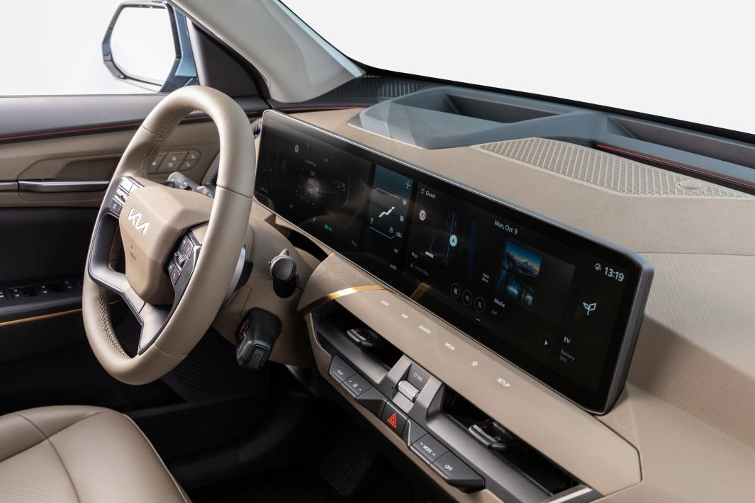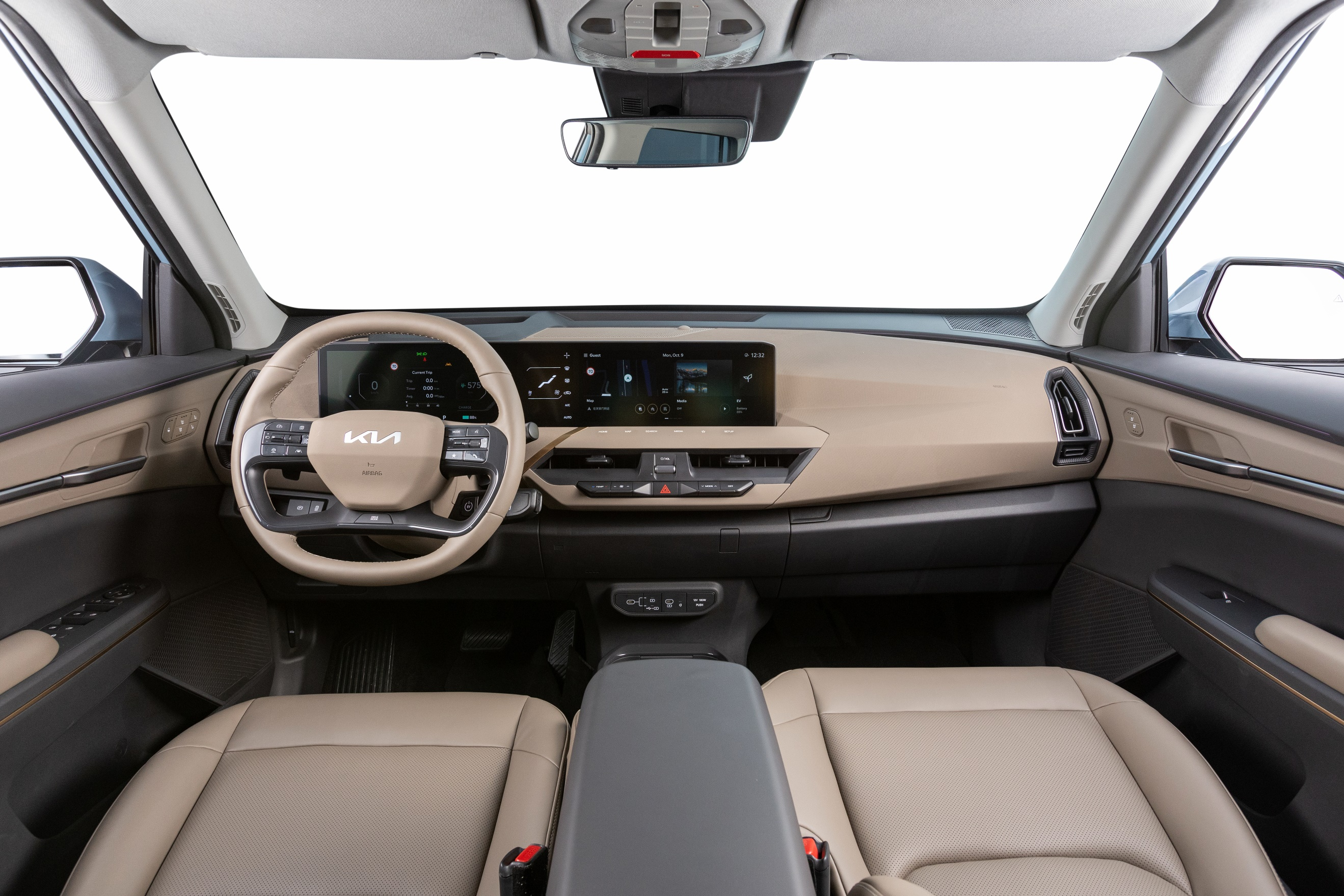 EV5的内饰完全重塑了车辆的内部空间。这款车型从最近推出的大型SUV EV9 中汲取灵感,拥有宽敞的内部空间,使其更接近于家庭休息室,而非传统的汽车座舱。