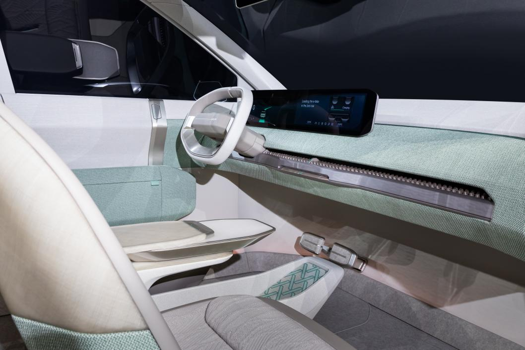在车内,EV3概念车将超凡的实用功能与创新的座舱氛围和设计融为一体。与车辆外观一样,“Joy for Reason(理性喜悦)”这一核心要素对车内设计同样造成了根本性的影响,融合了看似对立的价值观,形成了一种精确的产品设计语言,打造出一个让人感到愉悦的座舱,同时在乘客到达目的地后提供充足的空间以更好地享受生活。