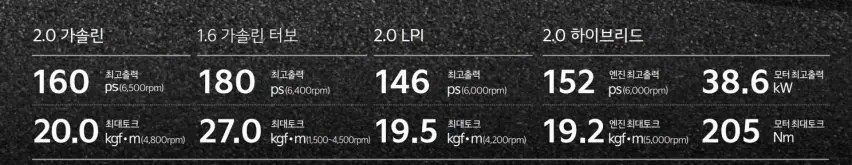 动力方面,在韩国本土时尚上,新款起亚K5将会提供2.0L的自然吸气发动机、1.6T发动机、2.0LPI液化石油气发动机以及2.0L混动动力。最大输出功率分别为160马力、180马力以及146马力发动机以及152马力/电机38.6kW。