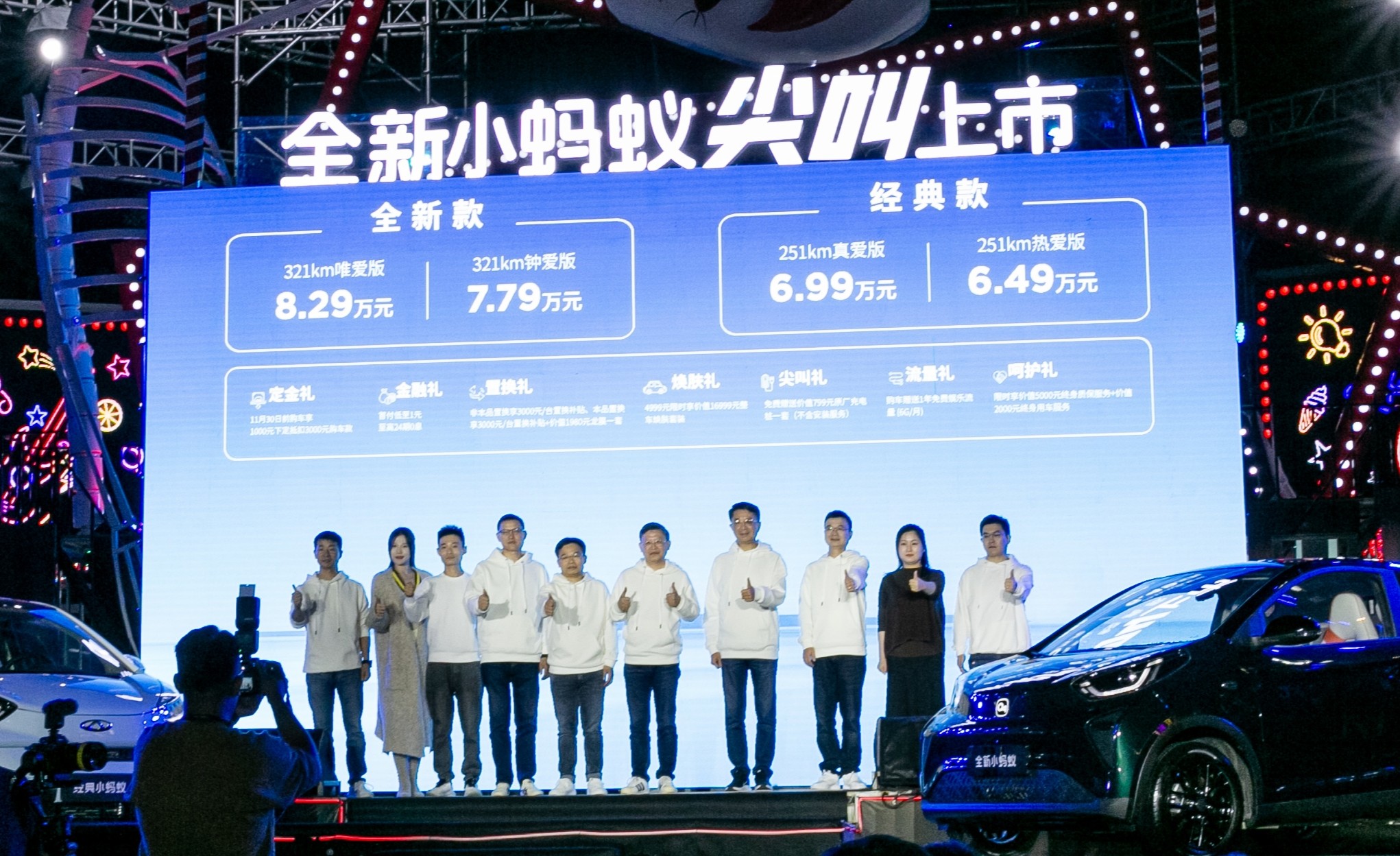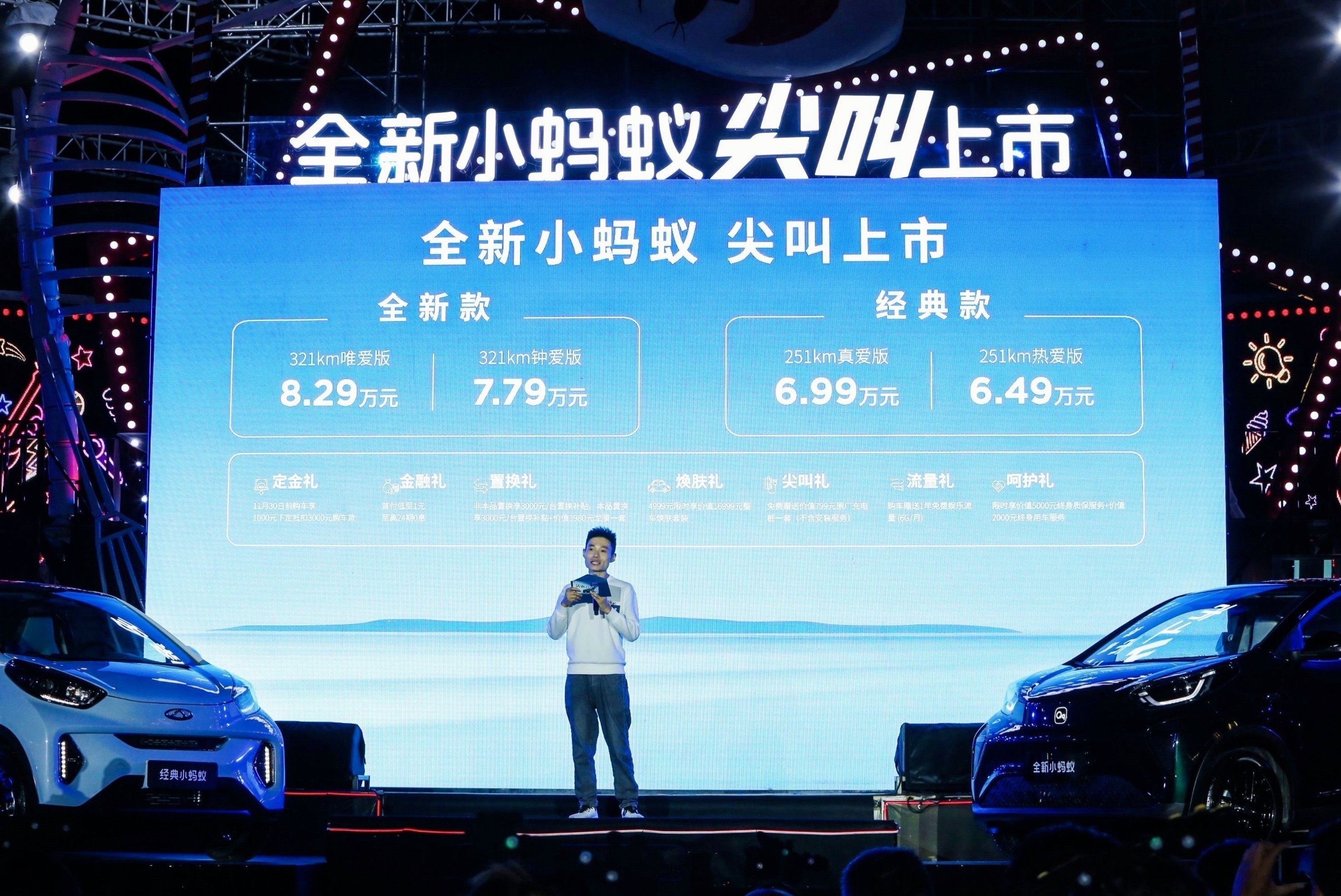 10月28日,全新小蚂蚁于安徽芜湖正式上市,新老车主、媒体朋友、经销商代表等众多嘉宾逾千人一同参与见证。本次上市会,共带来全新小蚂蚁和经典小蚂蚁两款车型,全新小蚂蚁包含321KM钟爱版与321KM唯爱版,售价为7.79万元-8.29万元。经典小蚂蚁包含251KM热爱版与251KM真爱版,售价为6.49万元-6.99万元。与此同时,官方还带来了包括定金礼、金融礼在内的多达7项上市好礼。