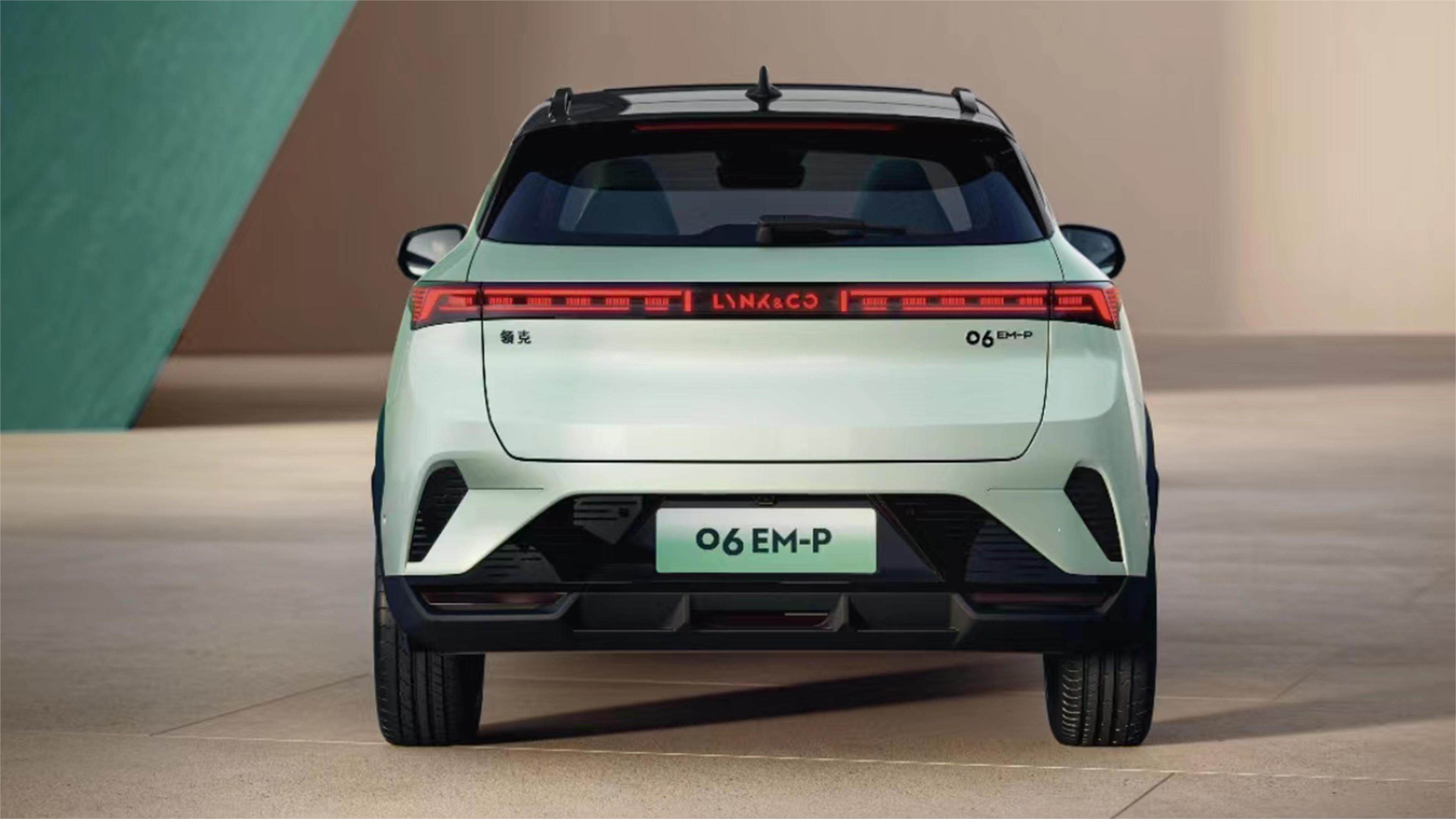 领克06 EM-P的车尾换装了全新的能量之翼贯穿式尾灯,这款尾灯有12组84块能量晶体,共330颗LED灯珠组成,点亮时能够带来非常高级的视觉效果。除了科技感十足的尾灯之外,新车尾部的整体造型则明显偏向简洁。