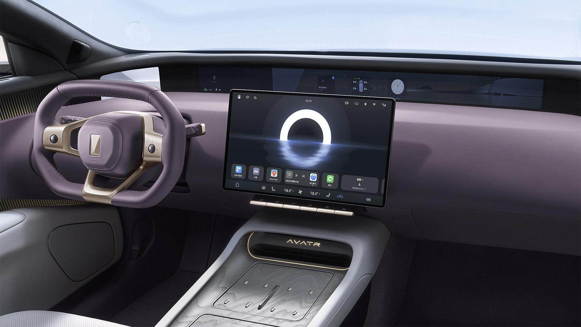 内饰方面,阿维塔12采用了Gentle Tech极简设计概念。它的绝大部分功能都有座舱内35.4英寸的4K全景宽屏和15.6英寸的中控屏进行操作、呈现。除了方向盘上的两个滚轮外,我们无法在它的车内找到一个实体按键。