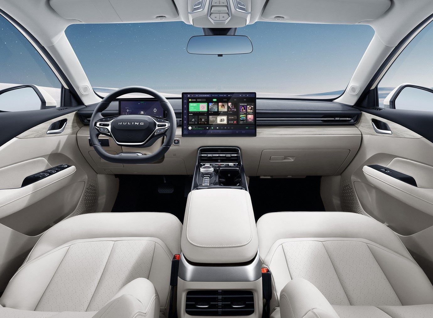 内饰方面,五菱星光的设计布局仍十分素雅简洁,其配备有8.8英寸数字LED屏、15.6英寸中央触控显示屏两块大尺寸悬浮式屏幕、双辐式多功能方向盘以及旋钮式换挡,配合上许多的亮色装饰件,观感还算尚可。