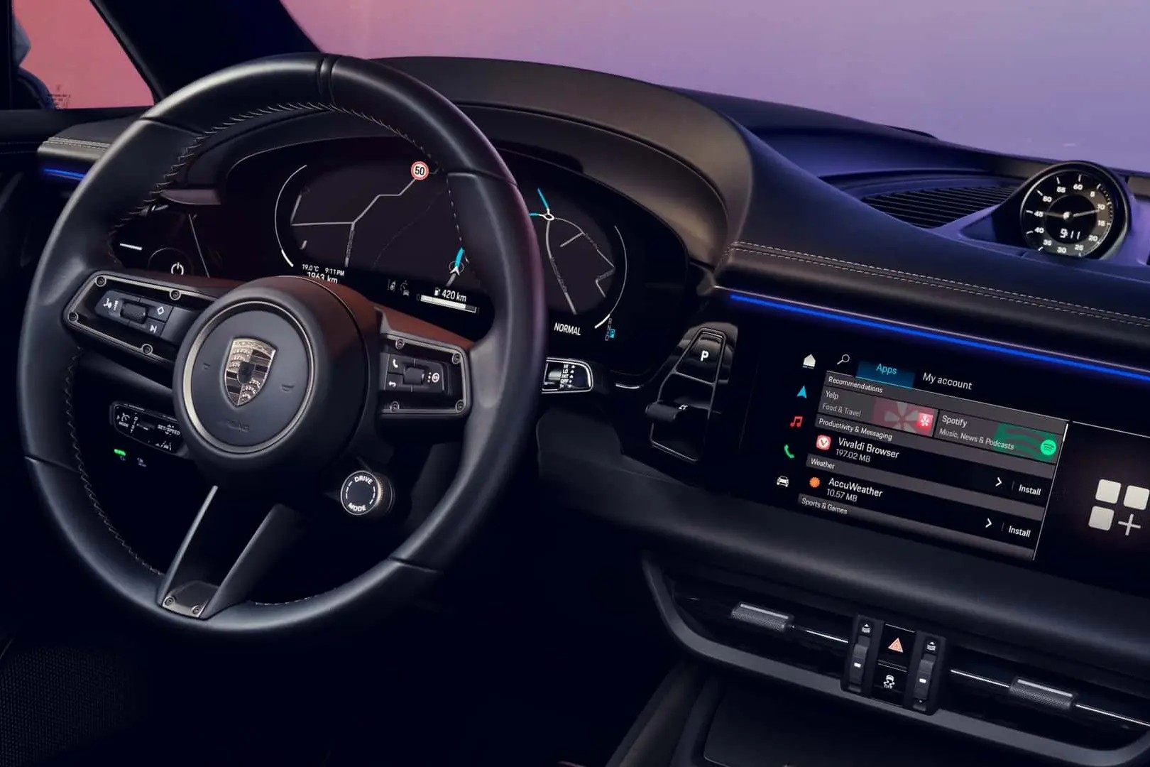 值得一提的是,根据官方表示,保时捷Macan EV车机系统底层将会基于安卓系统打造而来,可通过保时捷应用中心通过Spotify、YouTube甚至WebEx等众多程序进行更新,还有更丰富的娱乐软件和车机地图。